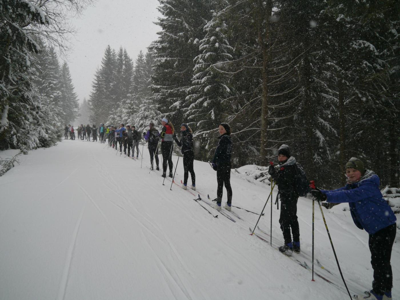 Am nächsten Morgen wurden wir von herrlichem Schneetreiben begrüßt. Frisch gestärkt ging es erneut auf die Loipe. Die kleine Schleife, die wir liefen, nahmen einige gleich zweimal mit! Doch vor der dritten Runde mussten wir den Trainingseifer und Bewegungsdrang stoppen, weil das Mittagessen auf dem Tisch stand und die Skier noch zurückgegeben werden mussten.