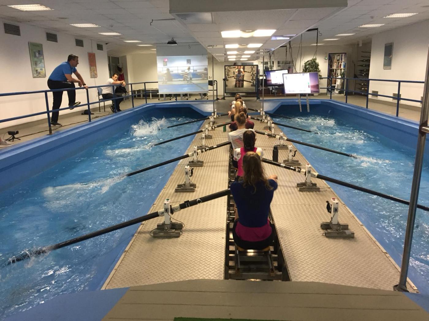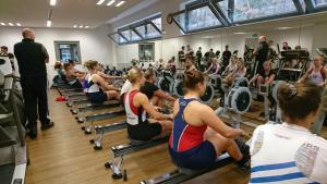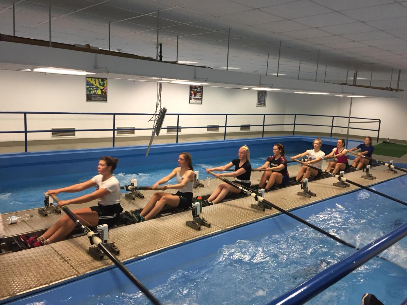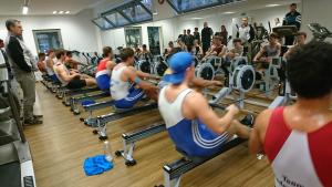 Ergänzend hat Karsten Terner, der als langjähriger Physiotherapeut auch die U19-Nationalmannschaft im Sommer begleitet, ein intensives Athletiktraining mit den Sportlern absolviert. Zudem schaute U23-Männer-Riemen-Bundestrainer Christian Vieth am Samstagmittag vor, um über den weiteren Weg im U23-Bereich zu informieren. „Das war trotz des schlechten Wetters eine gute Sache. Natürlich wären wir gerne mehr gerudert, aber das Training im Messbecken war z.B. für die Sportler aus Niedersachsen eine Bereicherung für ihre Rudertechnik“, so Niedersachsens Landestrainer Tobias Rahenkamp. Am Sonntag wurde dann die 6 km Belastung auf das Ruderergometer verlegt. „Das spornt an, wenn plötzlich starke Leute neben dir auf dem Ergo rudern“, freut sich NRW-Landestrainer Thomas Jung.