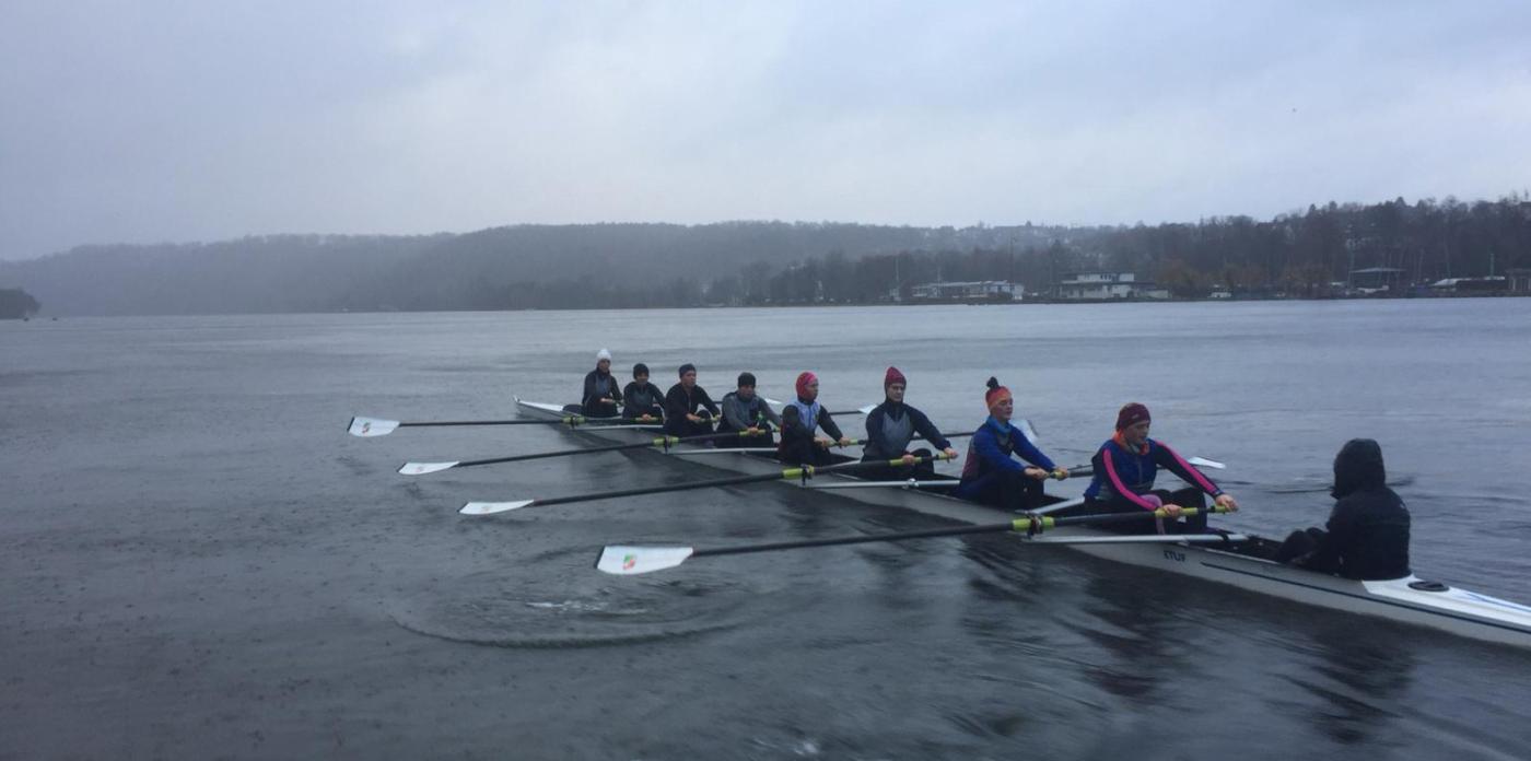 41 Juniorinnen und Junioren der Regionalgruppe West kamen am 7.12. 2018 für drei gemeinsame Trainingstage in Essen zusammen. Regionalgruppentrainer Ralf Wenzel und Junioren-Bundestrainerin Sabine Tschäge wollten die Tage zum intensiven Großboottraining nutzen, aber die stürmischen Bedingungen an diesem Wochenende ließen nur zwei Rudereinheiten auf dem Wasser zu. „Das hatten wir ein bisschen anders geplant, aber die Wetterkapriolen haben dann unser Programm bestimmt“, so Ralf Wenzel. Aber auch das „Ersatzprogramm“ brachte zahlreiche Erkenntnisse und gute Tipps für das weitere Heimtraining. „Die guten Möglichkeiten, die das Regattahaus in Essen mit Ruderbecken, Ergometer und Kardiogeräten, Krafträumen und Turnhalle bietet, ist ideal, um mit einer großen Gruppe gut zu arbeiten“, so Sabine Tschäge.