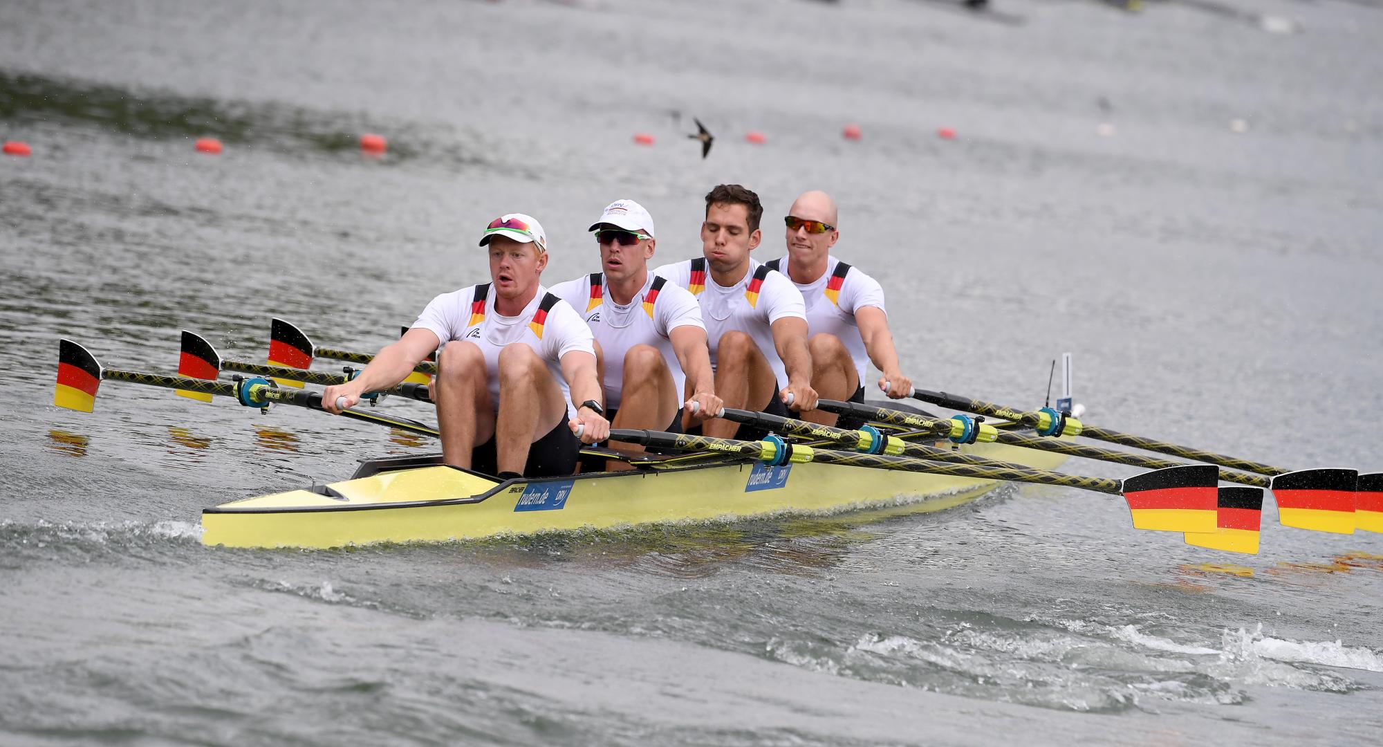 Ruben Steinhardt (Der Hamburger und Germania Ruder Club e.V.), Philipp André Syring (Sportclub Magdeburg e.V. Abteilung Rudern), Hans Gruhne (Ruder-Club Potsdam e.V.) und Stephan Krüger (Frankfurter Rudergesellschaft 'Germania' 1869 e.V.) rudern weiter in der Erfolgsspur. Das Quartett qualifizierte sich als Vorlaufsieger souverän für das Halbfinale.