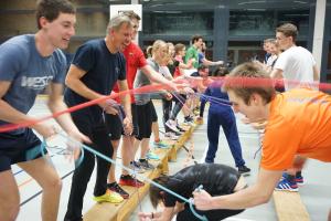 Harmlos kam unser Referent Sebastian Schulz, Physiotherapeut und Rudertrainer daher. Wir lernten praktisch in der Sporthalle, wichtige Schwerpunkte zum Thema Mobilität und Stabilität, als Geräte kamen nur Petzibälle und Matten zum Einsatz. Der Eine oder die Andere konnte in den darauffolgenden Tagen kaum noch laufen.