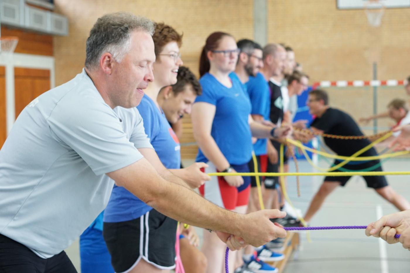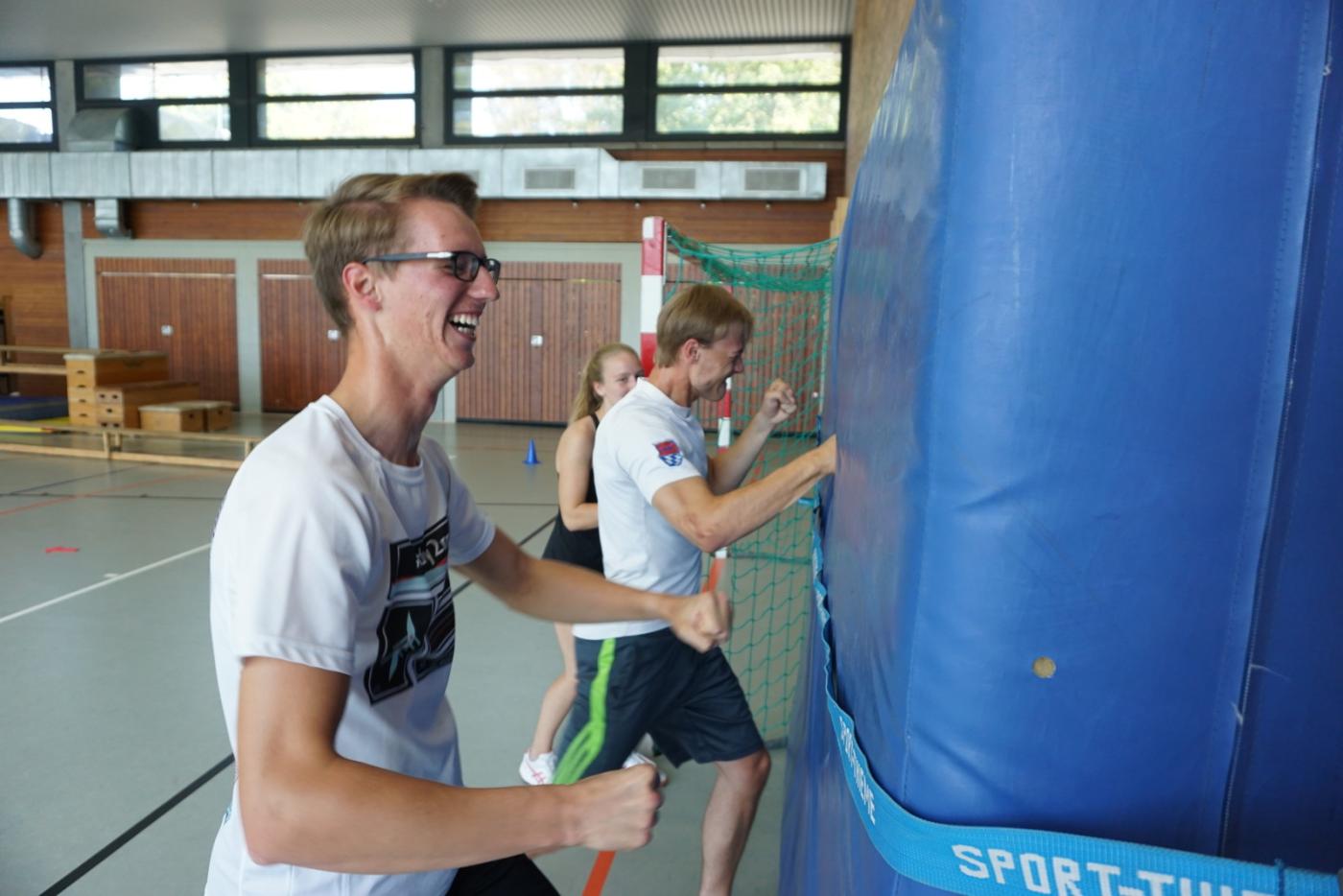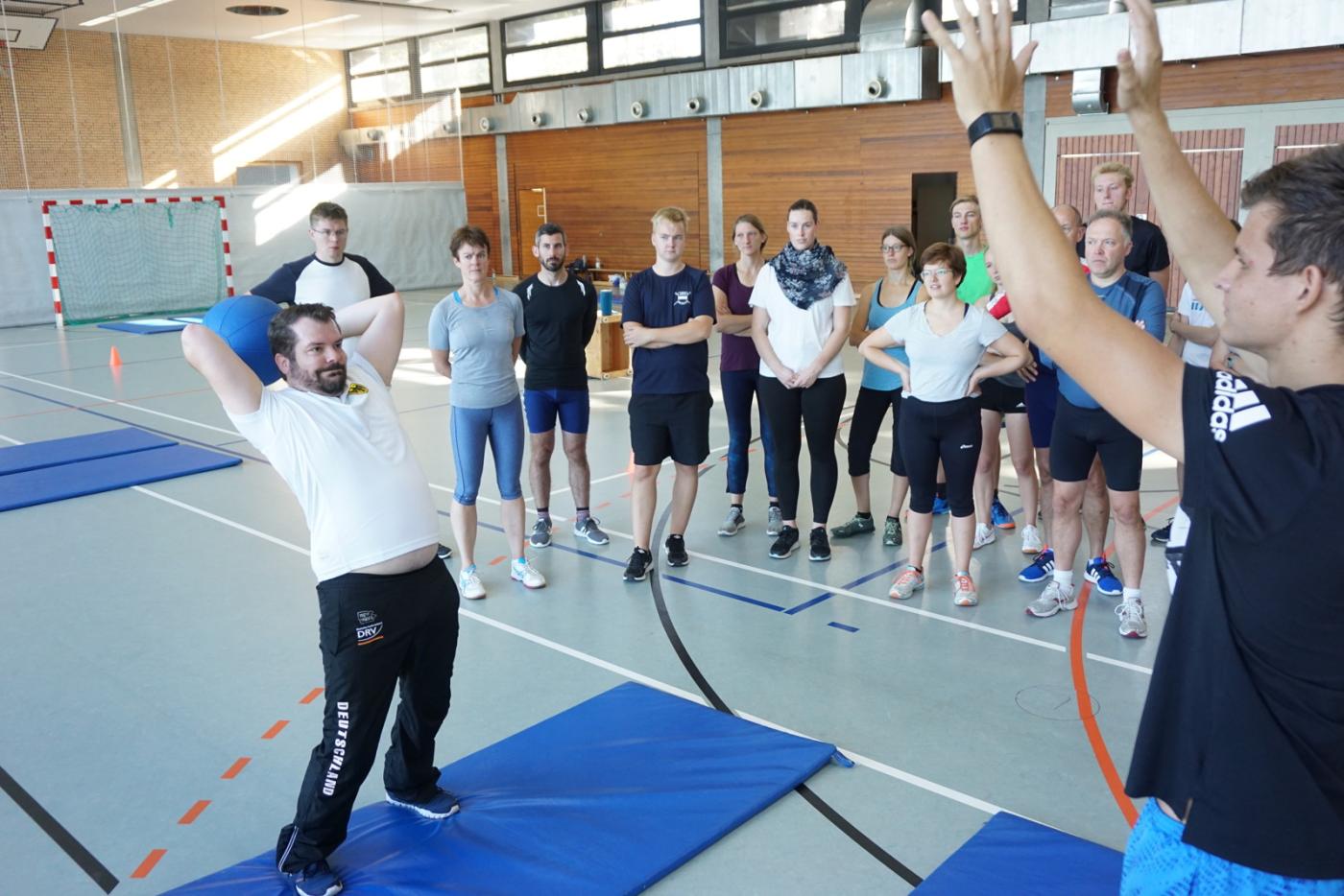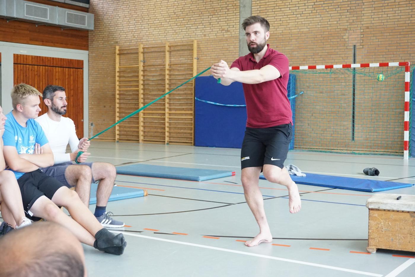 Aric Brämswig, Physiotherapeut aus Münster, gab zunächst eine theoretische Übersicht zum Krafttraining und Trainingsmethoden. Anschließend wurden zahlreiche Teste und Übungen selbst in der Sporthalle ausprobiert.