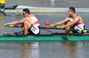Mit einem souveränen zweiten Rang haben sich Konstantin Steinhübel (Akademischer Ruderclub Würzburg e.V.) und Jonathan Rommelmann (Crefelder Ruder-Club 1883 e.V.) für das Viertelfinale qualifiziert. Das Duo lag bis zur 1.500-m-Marke in Führung, ließ dann aber die Iren vorbeiziehen.