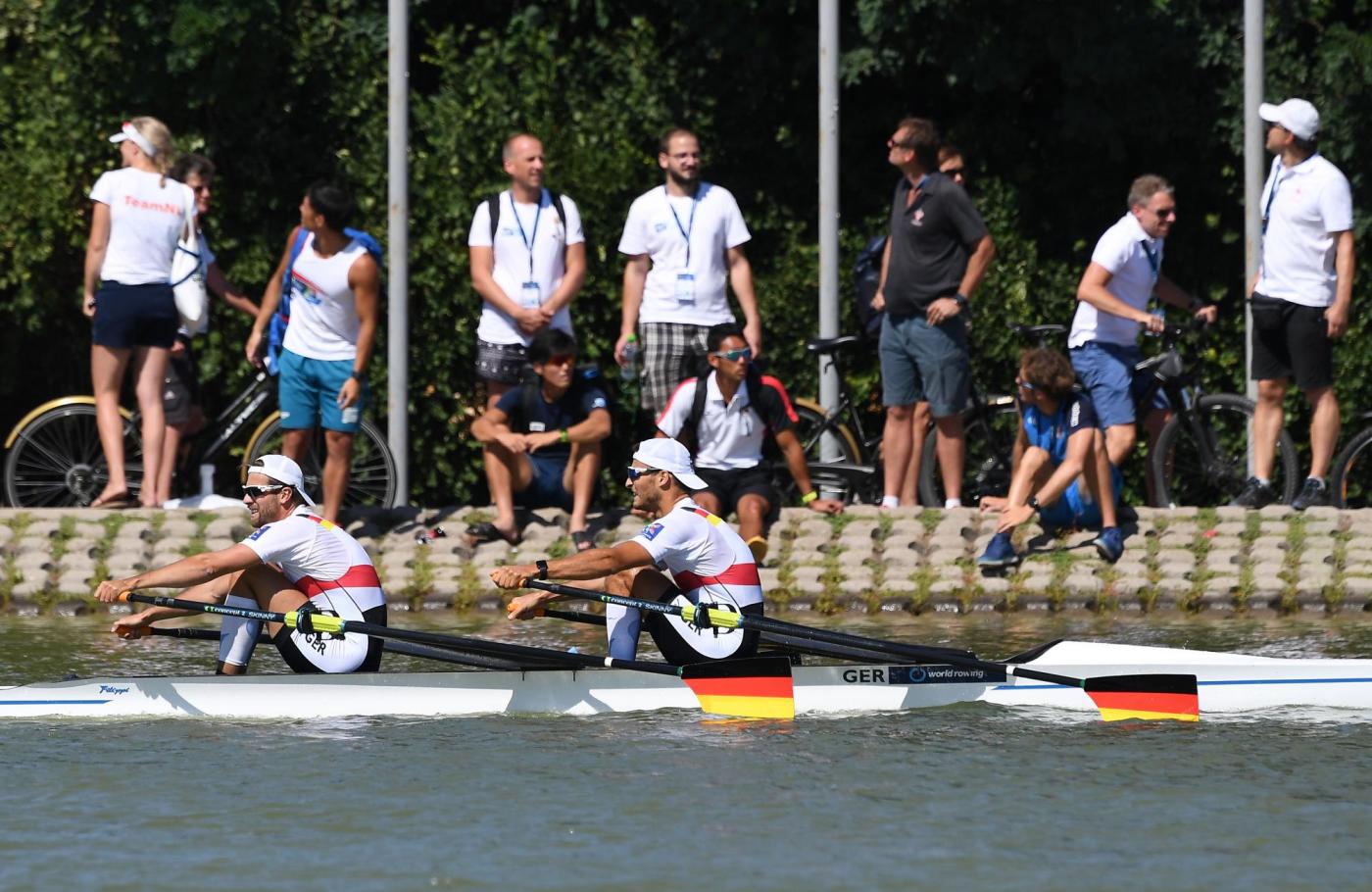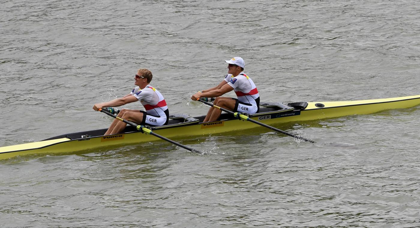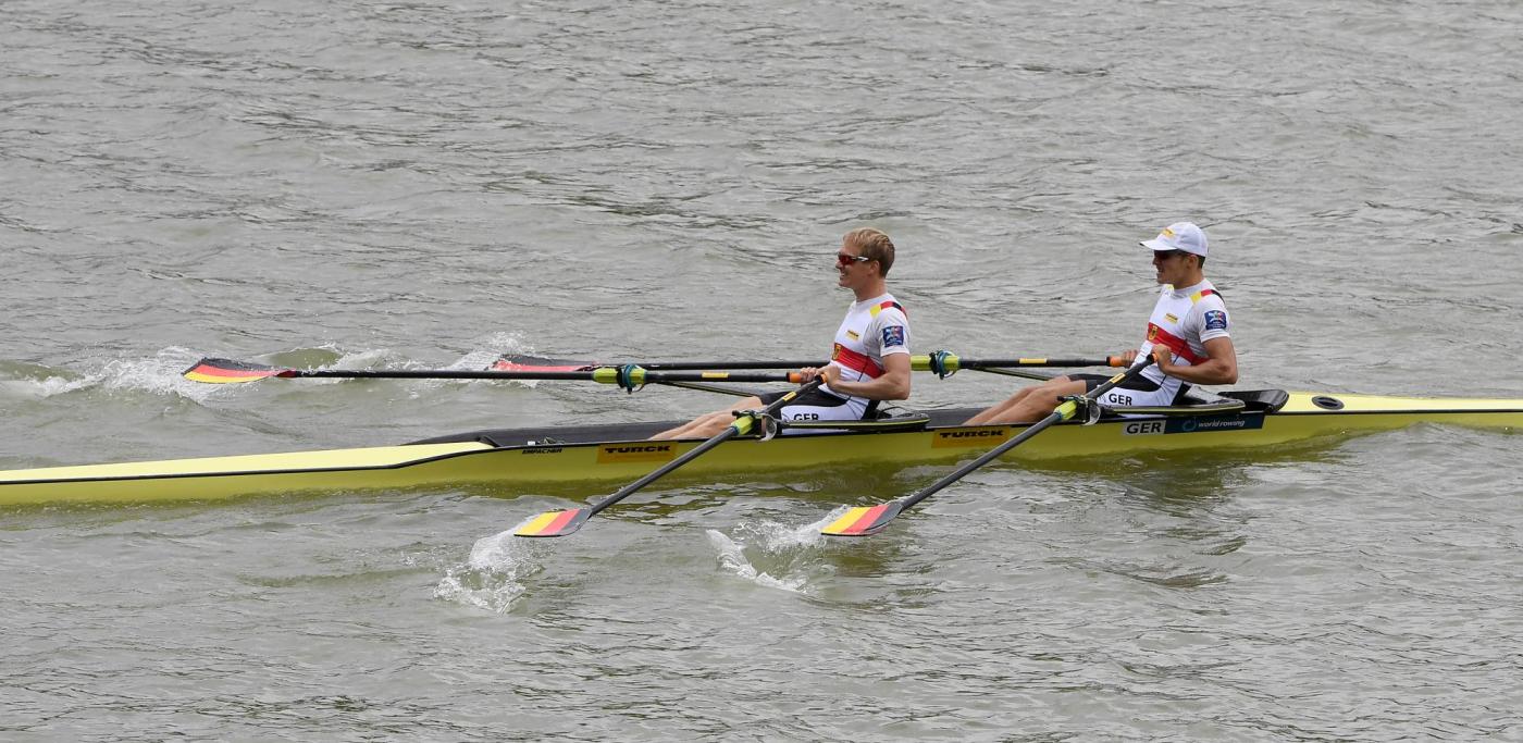 Den Auftakt macht der Männer-Doppelzweier, der nach vier Tagen Rennpause endlich wieder mitmitschen durfte. Nach dem Gewinn der Weltcup-Gesamtwertung wollten Timo Piontek (Koblenzer Ruderclub Rhenania 1877/1921 e.V.) und Lars Hartig (Friedrichstädter Rudergesellschaft e.V.) natürlich ins WM-Finale. Das Duo kam gut aus dem Startblock und übernahm auf den ersten 500 m die Führung. Bei der ersten Zeitmessung lagen sie 0,1 Sekunden vor den Niederländern und Schweizern. Bug an Bug ging es über die nächsten 500 m, nach 1.000 m immer noch die knappe Führung für das deutsche Boot. Dann drehten die Franzosen auf und setzten sich an die Spitze des Feldes. 500 m vor dem Ziel hatte Frankreich bereits 2,5 Sekunden Vorsprung rausgerudert, die Deutschen gingen als Zweiter auf die letzte Teilstrecke. Mit einem Schlussspurt zogen die Schweizer kurz vor dem Ziel noch an Piontekt/Hartig vorbei, als Dritter stehen die Deutschen aber sicher im WM-Finale. „Wir sind auf jeden Fall zufrieden. Am Ende war es für uns nicht mehr so entscheidend, ob wir Zweiter oder Dritter werden, wir wollten nur das Finale absichern“, erklärte Hartig nach dem Rennen. „Im Finale ist alles möglich, wir haben auf jeden Fall noch Potential“, ergänzt Piontek.