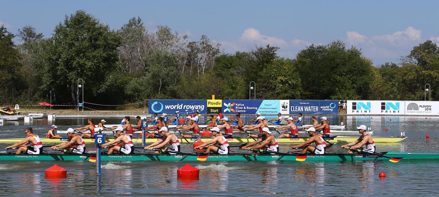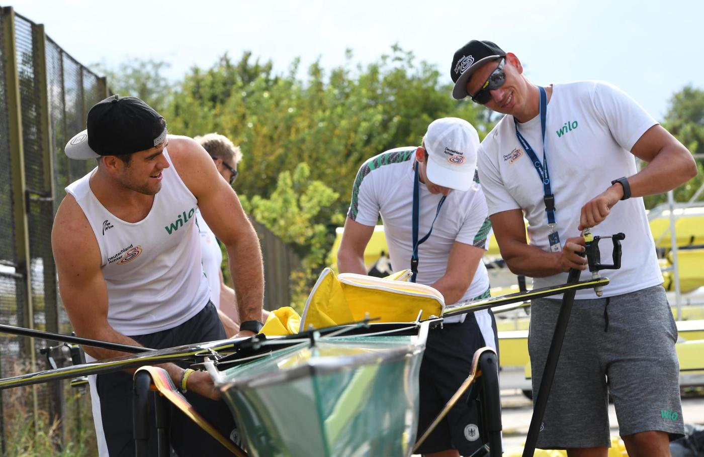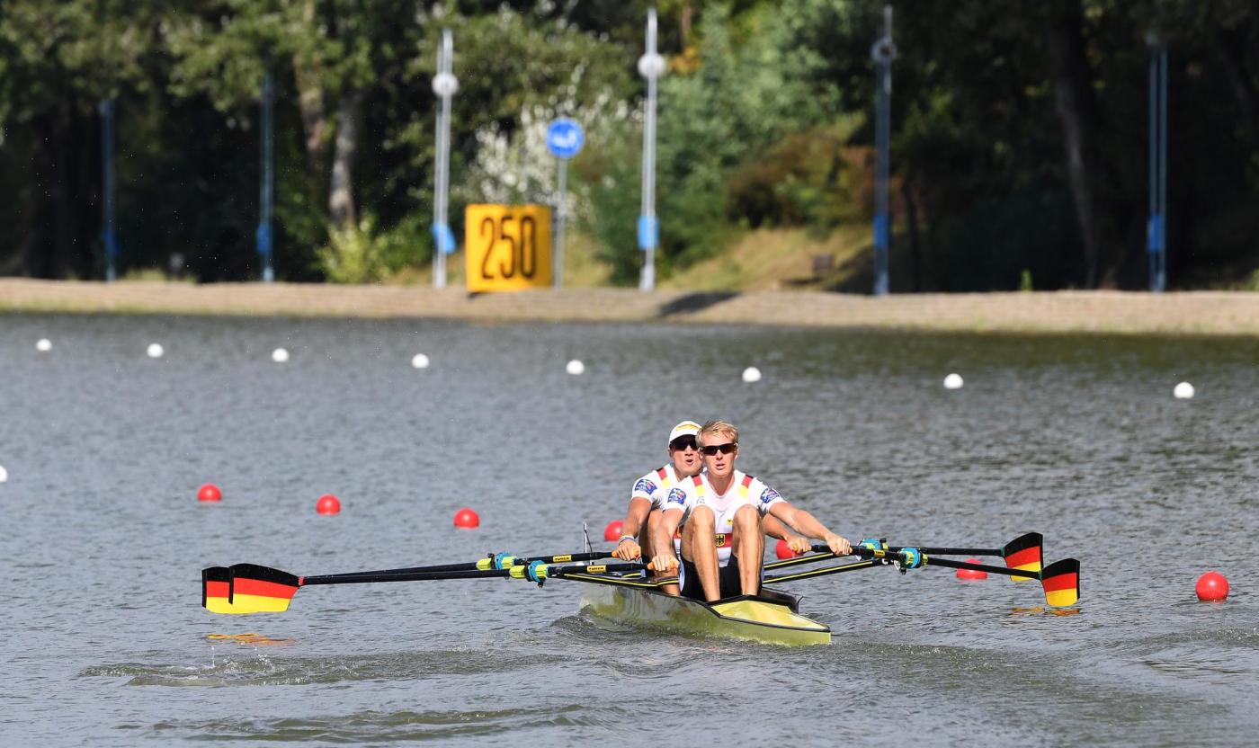 Den Auftakt macht der Männer-Doppelzweier, der nach vier Tagen Rennpause endlich wieder mitmitschen durfte. Nach dem Gewinn der Weltcup-Gesamtwertung wollten Timo Piontek (Koblenzer Ruderclub Rhenania 1877/1921 e.V.) und Lars Hartig (Friedrichstädter Rudergesellschaft e.V.) natürlich ins WM-Finale. Das Duo kam gut aus dem Startblock und übernahm auf den ersten 500 m die Führung. Bei der ersten Zeitmessung lagen sie 0,1 Sekunden vor den Niederländern und Schweizern. Bug an Bug ging es über die nächsten 500 m, nach 1.000 m immer noch die knappe Führung für das deutsche Boot. Dann drehten die Franzosen auf und setzten sich an die Spitze des Feldes. 500 m vor dem Ziel hatte Frankreich bereits 2,5 Sekunden Vorsprung rausgerudert, die Deutschen gingen als Zweiter auf die letzte Teilstrecke. Mit einem Schlussspurt zogen die Schweizer kurz vor dem Ziel noch an Piontekt/Hartig vorbei, als Dritter stehen die Deutschen aber sicher im WM-Finale. „Wir sind auf jeden Fall zufrieden. Am Ende war es für uns nicht mehr so entscheidend, ob wir Zweiter oder Dritter werden, wir wollten nur das Finale absichern“, erklärte Hartig nach dem Rennen. „Im Finale ist alles möglich, wir haben auf jeden Fall noch Potential“, ergänzt Piontek.