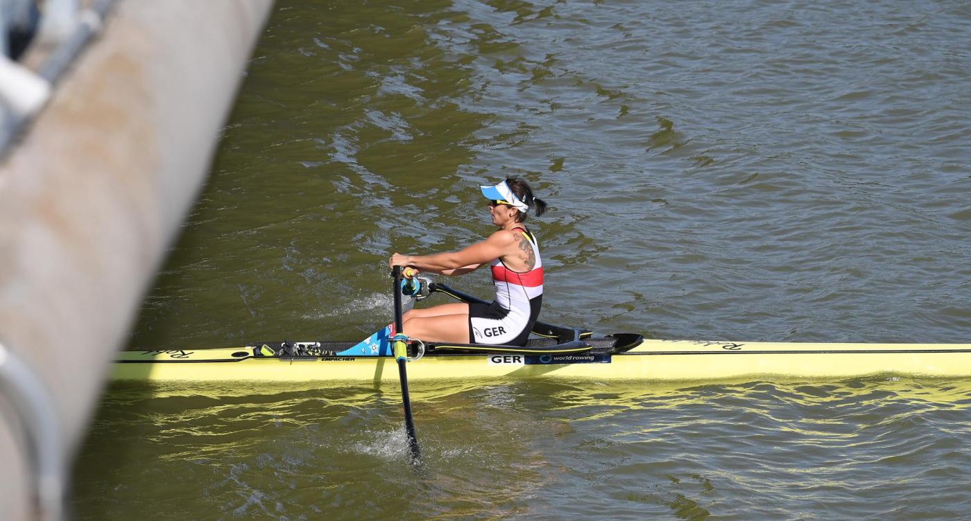 Ebenfalls ins Finale eingezogen ist Annekatrin Thiele (SC DHfK Leipzig e.V. Abtlg. Rudern) im Einer. Kurz nach dem Start übernahm die Dänin die Führung und setzte sich schnell eine Bootslänge vom Rest des Feldes ab. Nach 500 m hatte sie bereits über drei Sekunden auf Thiele rausgefahren, die die erste Zeitmessung als Dritte überquerte. Im weiteren Rennverlauf konnte sich auch die Irin von der Deutschen absetzen. Mit knapp fünf Sekunden Rückstand auf die Spitze ging Thiele auf die zweite Streckenhälfte. Die Kanadierin auf der Nebenbahn kam immer näher, fing dann aber einen Krebs und fiel zurück. Da der Abstand auf Rang vier groß genug war, konnte Thiele am Ende Tempo rausnehmen. Der Sieg ging an die Irin, Zweite wurde die Dänin und zwei Sekunden dahinter kam die Deutsche als Dritte ins Ziel. Damit steht sie im WM-Finale. „Ich bin auf jeden Fall zufrieden. Ich muss aber gestehen, dass ich mich auf den letzten Metern gefragt habe, warum soll ich jetzt noch investieren. Deshalb bin ich das Tempo vorne nicht mehr so mitgegangen. Auch wenn meine Trainerin mir vom Rand aus zugerufen hat, ich soll mich dranhängen“, so Thiele nach dem Rennen. „Ich habe mir in der Tat gewünscht, dass Anne am Ende konsequent weiterfährt, die letzten 500 hätte sie schneller gekommt. Aber sie steht im Finale, das zählt“, so ihre Trainerin Angelika Noack.