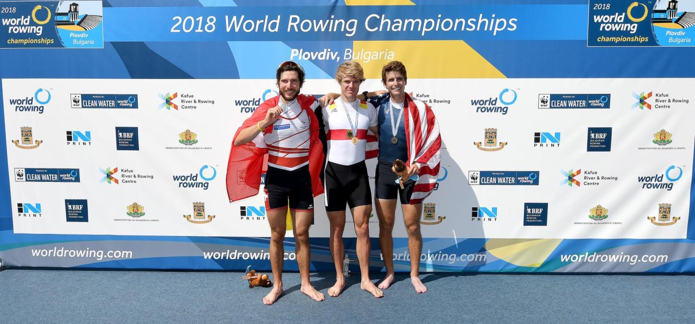 Gleich drei Medaillen in den nichtolympischen Bootsklassen holten die DRV-Athletinnen und Athleten am ersten Finaltag. Jason Osborne ist Weltmeister im leichten Einer, ebenfalls zu Gold ruderte der leichte Männer-Doppelvierer, Bronze ging an den leichten Frauen-Doppelvierer.