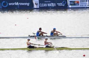 Den Auftakt aus deutscher Sicht machten Kaspar Virnekäs und Tom Tewes (beide Münchener Ruder-Club von 1880 e.V.). Das Duo ordnete sich nach dem Start hinter den führenden Italienern ein. Im weiteren Streckenverlauf entwickelte sich ein spannender Zweikampf zwischen den beiden Booten. Am Ende fehlten den Jungs von Trainer Armin Hörtreiter keine zwei Zehntel zum Sieg. Morgen im Finale werden die Karten dann neu gemischt.