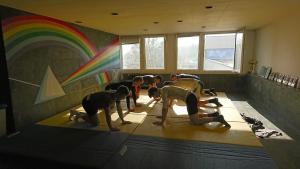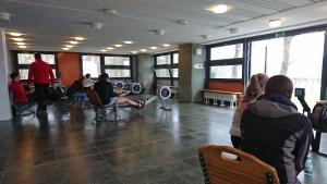 Neben dem Training auf dem Wasser fanden auch einige unterstützende Gymnastikeinheiten statt. Während einer frühen Einheit in der Turnhalle am Samstagmorgen konnte sich der Nebel verziehen, sodass das Wassertraining um 10 Uhr bei strahlendem Sonnenschein stattfinden konnte.