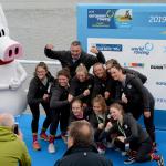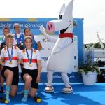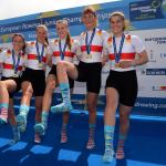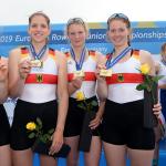 Und die Goldjagd ging weiter. Auch Luise Bachmann, Hannah Grimm, Alina Henze und Sarah Wibberenz (RV Ingelheim e.V./Akademischer RV zu Leipzig e.V./RV Berlin von 1878 e.V./RC-Havel Brandenburg e.V.) freuen sich über den EM-Titel. Das Quartett setzte sich vom Start weg an die Spitze und dominierte das Rennen bis ins Ziel.