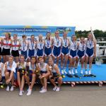 Pia Renner, Paula Burbott, Antonia Galland, Stina Röbbecke, Elisa Patzelt, Olivia Clotten, Helena Spanke, Cecilia Sommerfeld und Steuerfrau Emilie Meyer (Kettwiger Rudergesellschaft e.V./Neusser RV/RC am Baldeneysee e.V./RC 'Wiking' e.V. Lüneburg/Crefelder RC/Celler RV/Neusser RV/RV Waltrop von 1928 e.V.) sind Vize-Europameister. Die Crew konnte nur dem Tempo der siegreichen Russinnen nicht ganz folgen, verwaltete den Silberrang aber souverän bis ins Ziel.