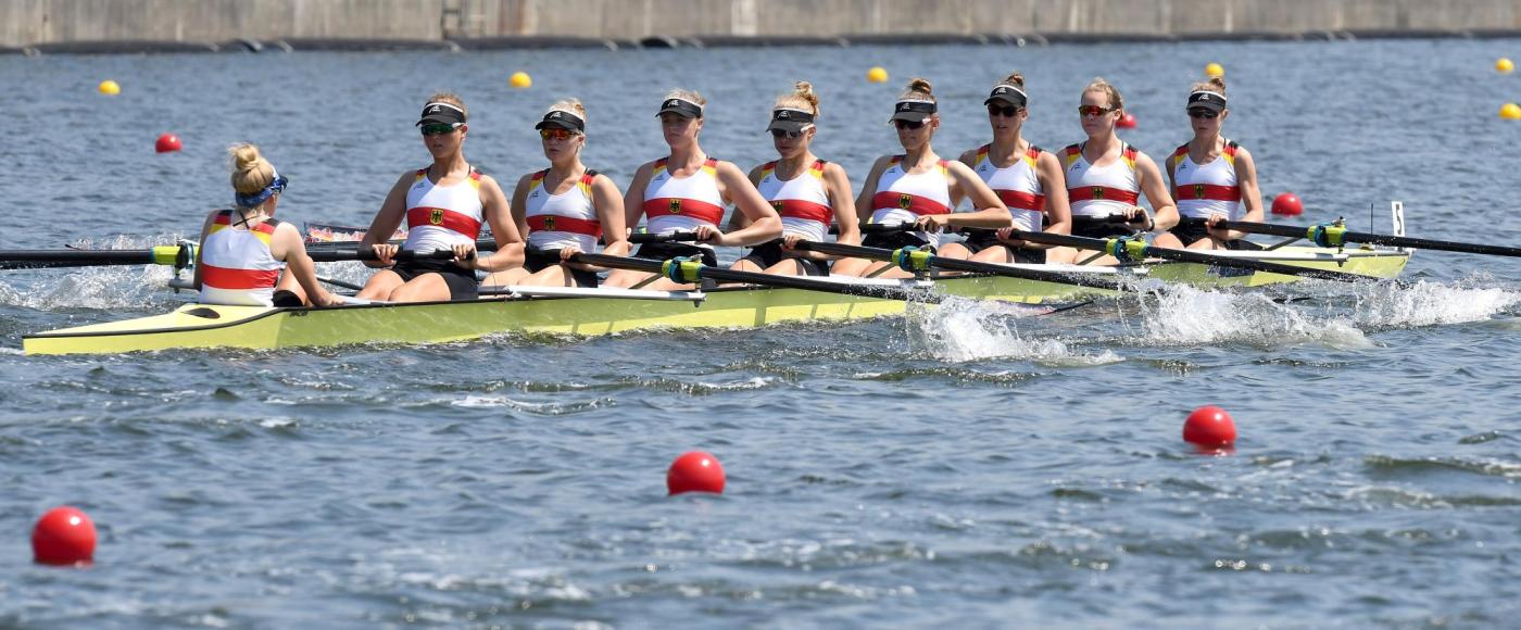 Bei nur fünf teilnehmenden Booten war für den Juniorinnen-Achter heute nur ein Bahnverteilungsrennen angesetzt. Clara Oberdorfer, Kerstan Klara, Kristin Wagner, Svea Pichner, Lene Mührs, Olivia Clotten, Emma Kögler, Mathilda Kitzmann und Steuerfrau Janne-Marit Börger (Ulmer RC Donau/RC Potsdam/Lübecker RG v. 1885/Kettwiger RG/Neusser RV/RC Potsdam/LRV Mecklenburg-Vorpommern/Ratzeburger RC) haben laut Bundestrainerin Tschäge aber noch nicht überzeugt, können aber bis zum Finale nachbessern. Bereits nach dem achten Schlag zogen die Mädels einen Krebs, der für viel Unruhe sorgte. Die Athletinnen von Trainer Ralf Wenzel benötigten einige Zeit, um wieder richtig ins Rennen zu finden. Am Ende wurde es der dritte Rang hinter Italien und den USA.