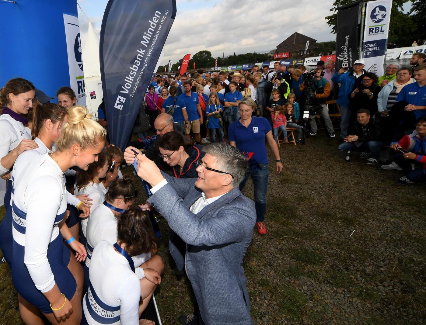 Die Hannoveranerinnen vom Göing-Achter konnten bei den Frauen ihre gute Leistung von Duisburg bestätigen und landeten wieder unter den Top 4. Ein erneut enges Rennen lieferten sich die beiden in der Tabelle führenden Teams aus Berlin/Potsdam und Essen-Kettwig, in dem dieses Mal der Vorjahres-Champion HavelQueen-Achter die Nase vor dem Amrop Ruhr-Achter Essen-Kettwig hatte. Bronze konnten sich die Krefelder Mädels in einem Herzschlag-Rennen gegen den Göing-Achter Hannover sichern. Für die Lokalmatadorinnen vom Melitta-Achter Minden „Team Red“ war es am Ende Platz 7. Sie konnten ihren Heimvorteil in diesem Jahr nicht nutzen. Auch die Wurzenerinnen vom Mulder8er Wurzener Land konnten ihr Renntagsziel nicht erreichen und behalten die „rote Laterne“ in der Tabelle.