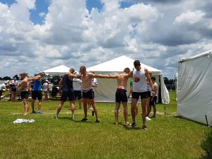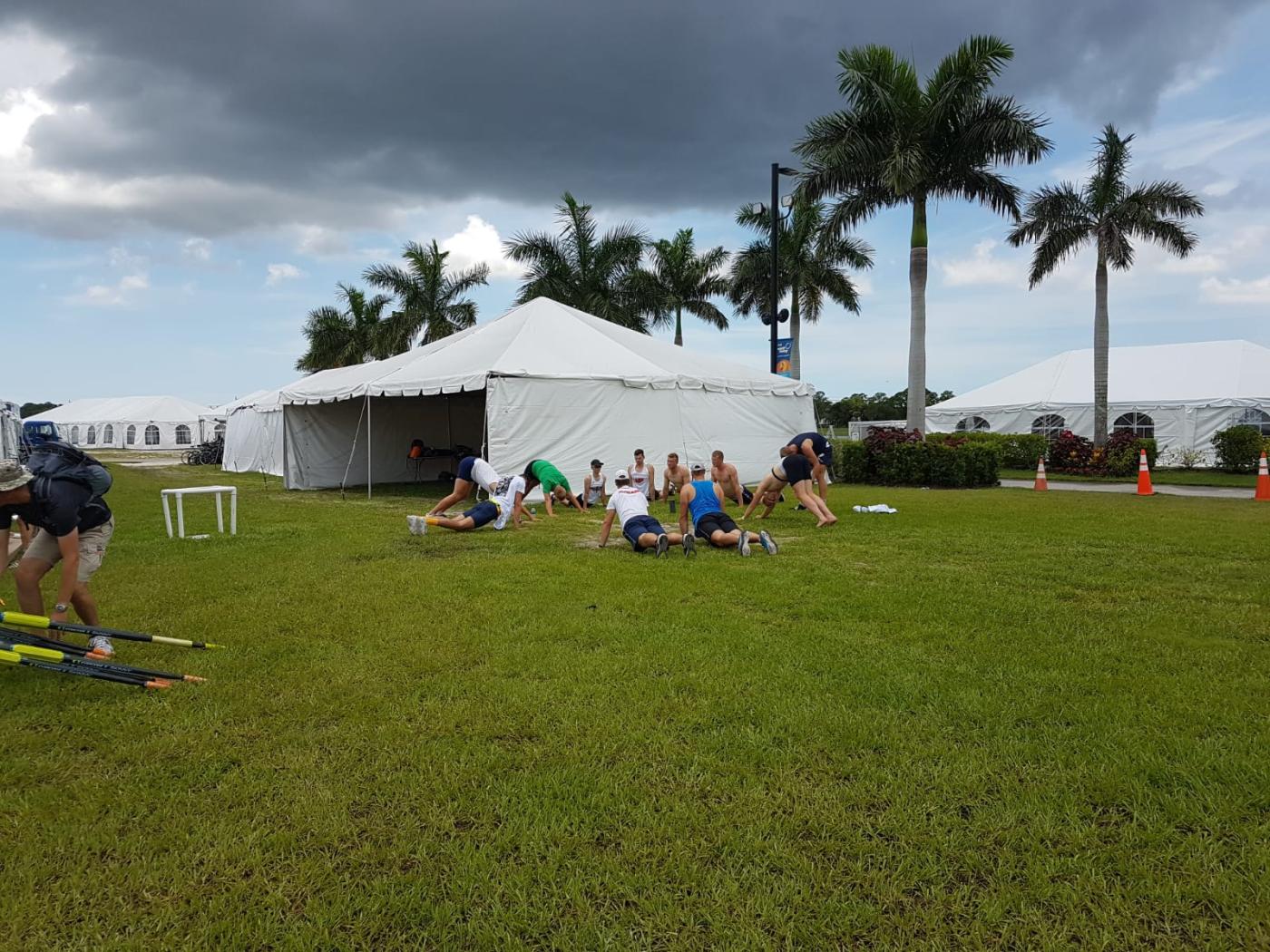Die erste ist mit Trainer Ralf Bockelmann über Zürich nach Tampa geflogen. Die zweite Gruppe mit Bundestrainerin Brigitte Bielig hat den Weg über Frankfurt nach Orlando genommen. Nachdem Bockelmann und seine Sportler gegen 22.00 Uhr Ortszeit (04.00 Uhr nachts in Deutschland) im Hotel angekommen sind, musste die Bielig-Gruppe aufgrund eines Unwetters in Orlando nach Miami weiterreisen. Nach weiteren zwei Stunden Aufenthalt dort ging es dann endlich weiter Richtung Hotel, wo der Tross dann um 00.30 Uhr Ortszeit (06.30 Uhr in Deutschland) nach fast 24 Stunden auf den Beinen endlich ankam.