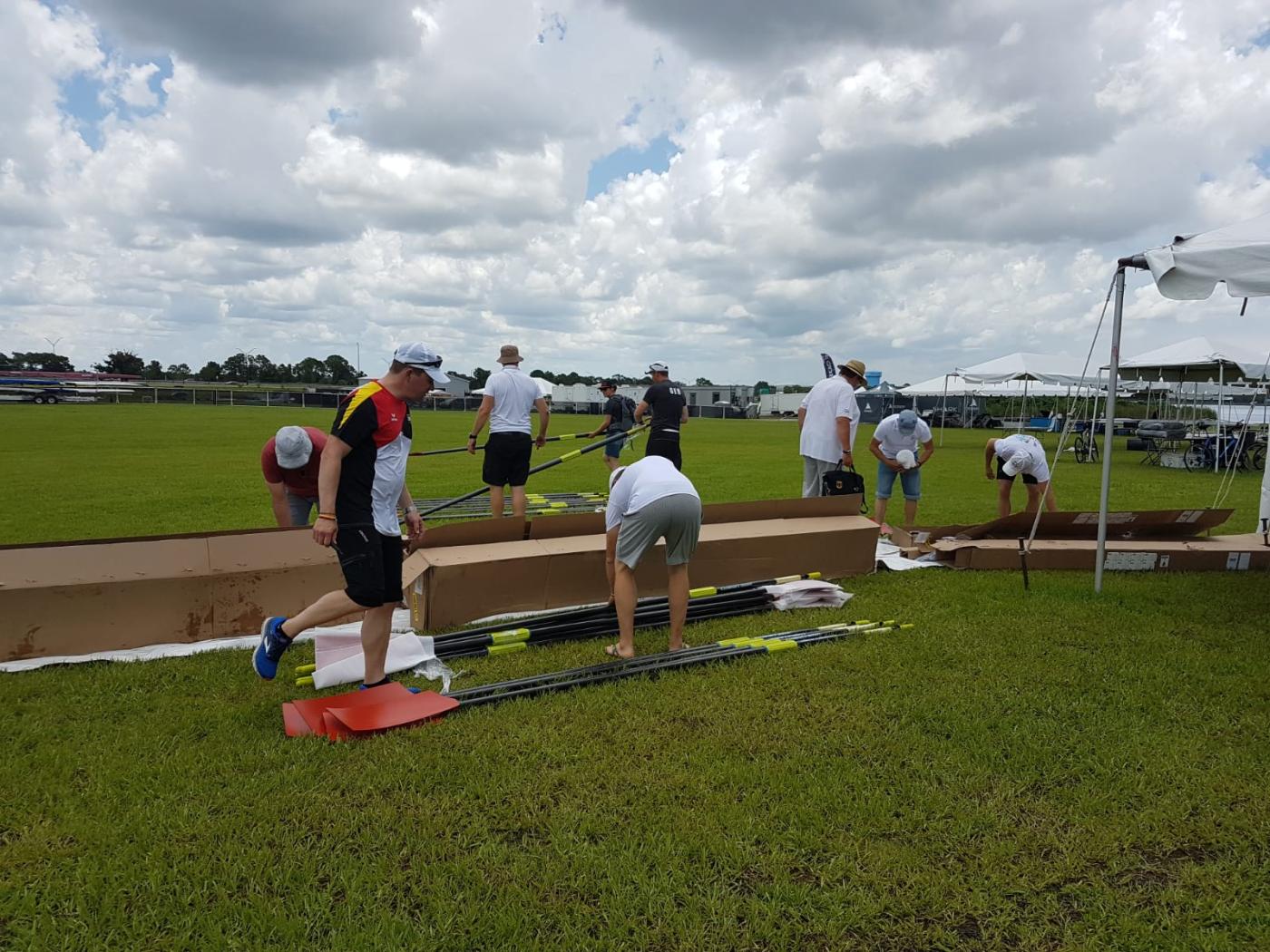 Die Boote werden heute um 9 Uhr Ortszeit vom Team in Empfang genommen. Danach kann auch endlich gerudert werden. Bei Temperaturen von über 30 Grad und mindestens 70 Prozent Luftfeuchtigkeit eine heiße Angelegenheit. Aber die Sportlerinnen und Sportler haben sich ja in der "Hitzekammer" in Ratzeburg schon auf diese Bedingungen vorbereitet.