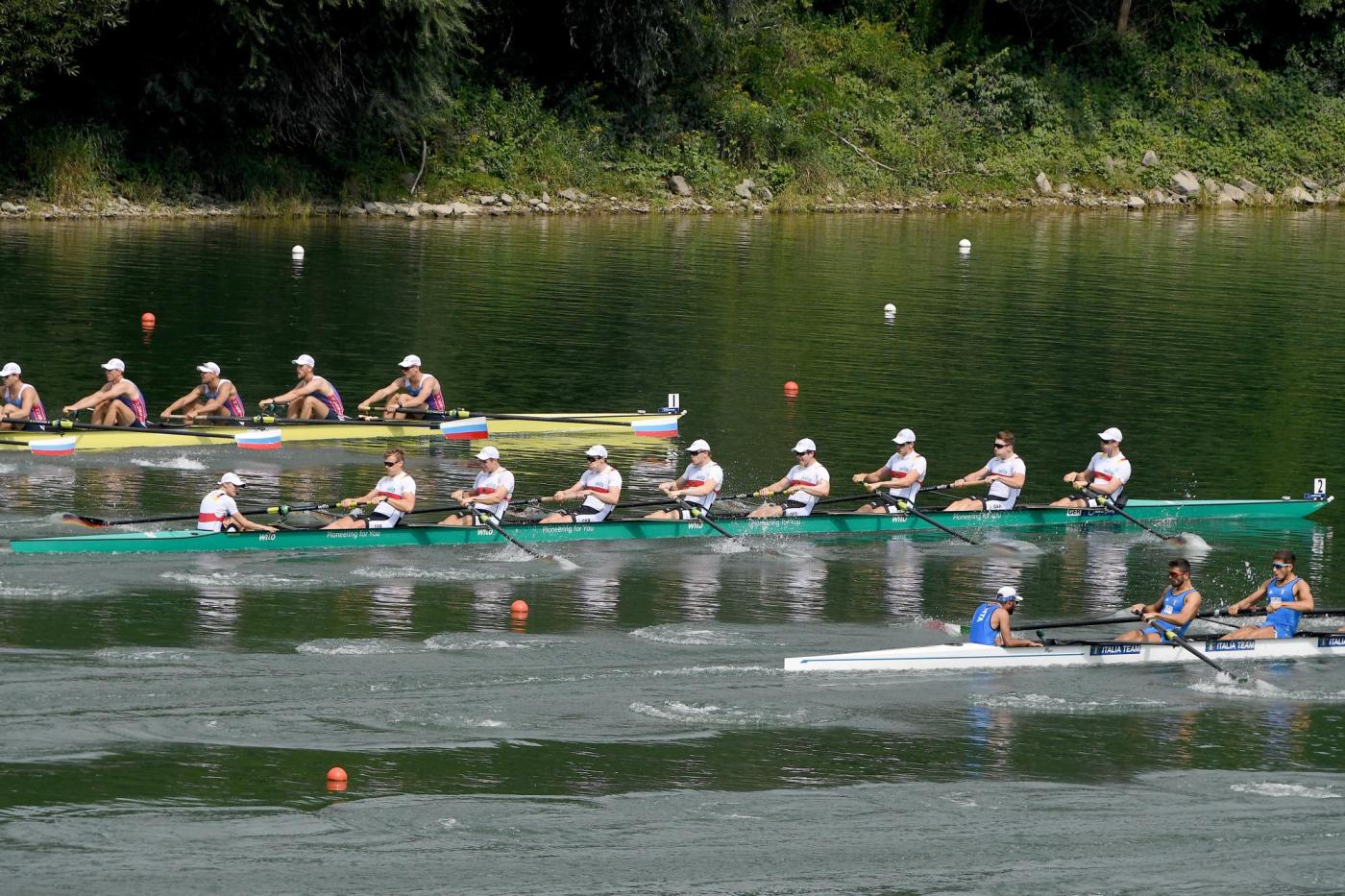 Für den leichten Frauen-Doppelvierer stand heute nur ein Bahnverteilungsrennen auf dem Programm. Vera Spanke, Ronja-Fini Sturm, Leonie Pieper und Leonie Pless (Neusser RV/RC Havel Brandenburg e.V./RC Germania Düsseldorf 1904 e.V./Frankfurter RG Germania) nutzten das Rennen, um sich einen Eindruck von der Konkurrenz zu machen. Dabei kamen sie allerdings nicht sehr gut aus dem Start. Als Fünfter gingen sie über die 500 m Marke. Im weiteren Rennverlauf arbeiteten sie sich noch auf den vierten Rang vor. „Wir hatten vorher abgesprochen, dass wir nicht alles zeigen, was wir können. Am unserem Start müssen wir aber noch üben und hoffen, dass wir dann am Freitag um die Medaillen mitfahren können“, erklärt Leonie Pless.