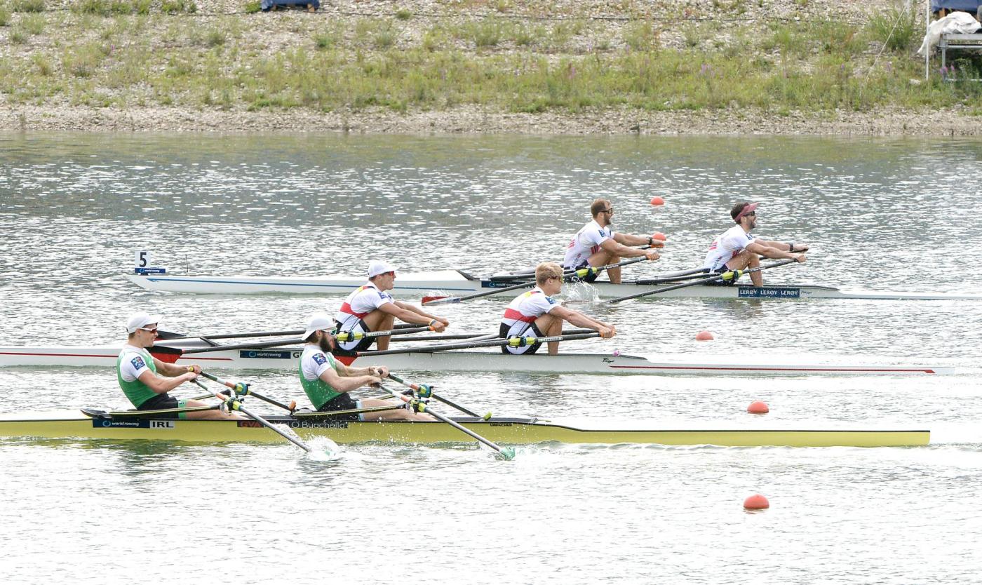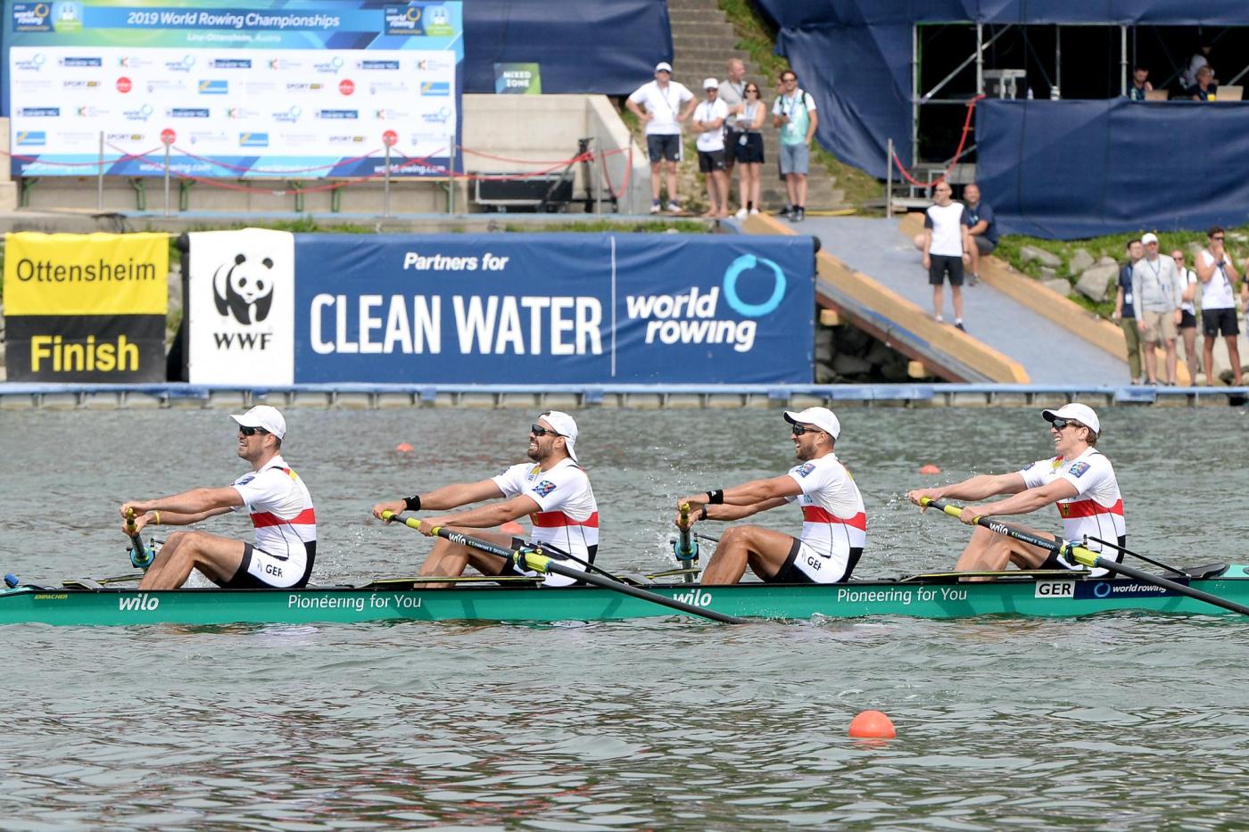Felix Brummel, Felix Wimberger, Max Planer und Nico Merget (RV Münster/Passauer RG/Bernburger RC/Frankfurter RG Germania) haben als Fünfter das Finale leider verpasst. Dabei sah es über 1500 m wirklich gut aus für die Jungs von Trainer Tim Schönberg. Das Quartett kam gut aus dem Startblock und setzte sich an die Spitze. 11 Hundertstel vor Polen überquerten sie als Erstes die 500-m-Marke. Im weiteren Rennverlauf wechselten sich die Boote an der Spitze mit der Führungsarbeit ab. Innerhalb von nur einer Sekunde gingen die ersten drei Boote – Australien, Polen und Deutschland – auf die zweite Streckenhälfte. Dann erhöhten die Australier das Tempo und setzten sich mit einer Länge vom deutschen Boot ab. Alles lief auf einen Endspurt auf den letzten 500 m raus. Während die Australier und Polen mit einer hohen Frequenz dem Ziel entgegen ruderten, schwanden beim deutschen Boot die Kräfte und das Boot um Schlagmann Nico Merget fiel zurück. Die USA und Frankreich zogen an den Deutschen vorbei und verwiesen sie auf den fünften Rang. Damit war der Traum vom Finale vorbei. Hängende Köpfe bei den Jungs. Im B-Finale haben sie aber noch die Chance, sich als Erster oder Zweiter direkt für die Olympischen Spiele zu qualifizieren. „Wir wussten, dass wir bei dem engen Feld schnell losrudern müssen. Wir wollten dem Rennen von vornherein unseren Stempel aufzudrücken, das hat auch gut geklappt. Am Ende hatten wir dann nicht mehr die Luft und bei 1500 m haben wir noch zwei kleine Fehler gemacht, die uns dann das Finale gekostet haben. Aber wenn man sich die Zeiten anschaut, ist das ein „Hammerrennen“ gewesen und spiegelt das hohe Niveau von dem Feld wider. Für uns ist es total schade. Wir hatten uns das ganz anders vorgestellt und wollten die Olympia-Quali erreichen. Aber wir haben genug getrauert, müssen das Rennen jetzt abhaken und konzentrieren und jetzt voll auf die Quali“, so ein enttäuschter Nico Merget später nach dem Rennen.