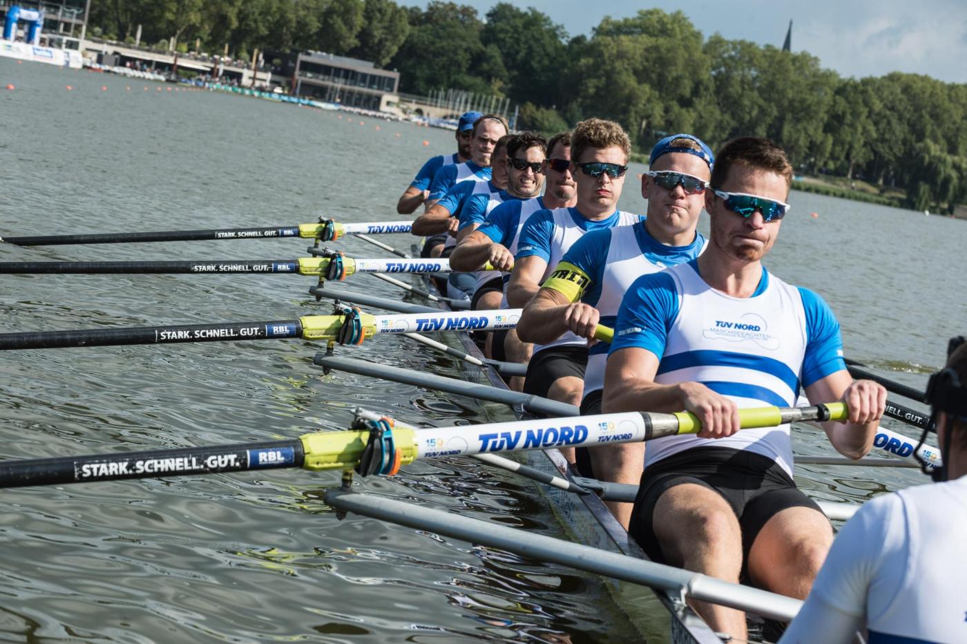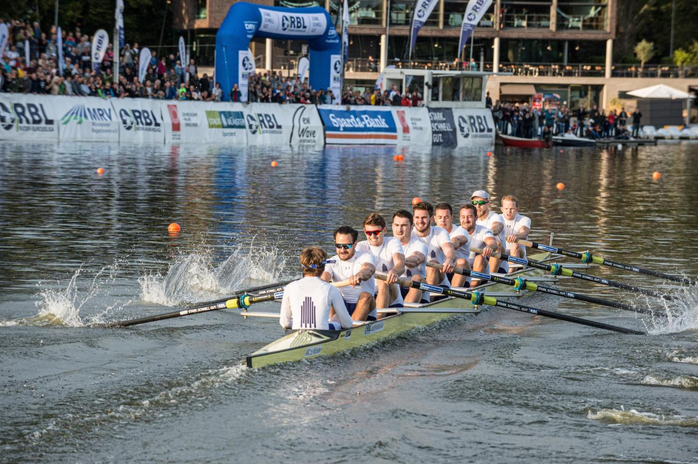 Bei den Männern konnte der amtierende und neue Liga-Champion, die „Hauptstadtsprinter DWB-Holding Berlin“, die weiße Weste in Münster nicht erhalten, aber trotz einer Niederlage in den Time-Trials gegen den Crefelder Ruder-Club und im Finale gegen die Lokalmatadoren vom „Münster-Achter“ stand der Gesamtsieg bereits nach dem Viertelfinale fest. Zu groß war der Vorsprung in der Tabelle vor den Verfolgern aus Münster und Minden. Durch den Finalsieg mit zweihundertstel Sekunden vor den Berlinern sicherten sich die Münsteraner unter den frenetischen Anfeuerungsrufen ihrer Fans Platz 2 in der Gesamtwertung. Der „Melitta- Achter Minden Team Black“ setzte sich im Rennen um Platz 3 gegen den "WurzenAchter“ durch. Das hieß auch Bronze in der Gesamtwertung. Im Mittelfeld der Liga hat sich auch in der „Aasee Arena“ gezeigt, dass hier jeder jeden schlagen kann. Für ein Ausrufezeichen sorgte der Germania-Achter mit Platz 9. Der „Travesprinter Lübeck“ belegt am Saisonende den 18. Platz.