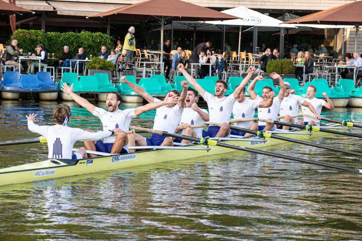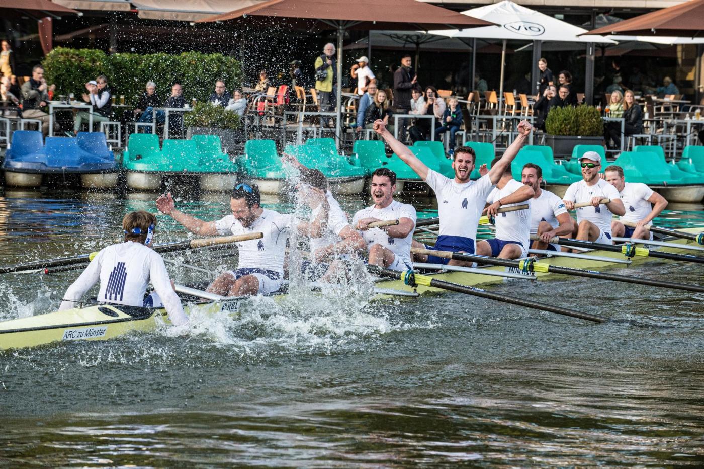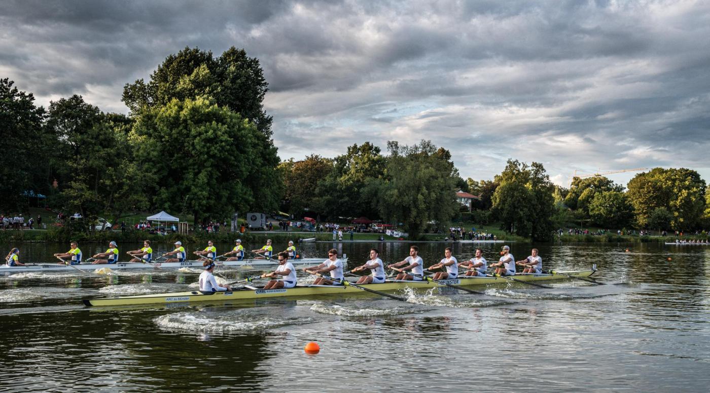 Der als Tabellenführer angereiste „Amrop Ruhr-Achter“ aus Essen-Kettwig lag vor dem Renntag punktgleich mit dem „HavelQueen-Achter“ aus Berlin/Potsdam an der Tabellenspitze. Beide Teams setzten sich in ihren Rennen des Renntags durch und trafen somit im Finale aufeinander. Hier hatten die Vorjahressieger den Bugball vorn und konnten somit ihren Titel verteidigen. Der „Göing-Achter“ aus Hannover sicherte sich mit Platz drei in Münster auch den Bronzerang für die gesamte Saison vor dem Team des Crefelder Ruder-Clubs. Der „Mulde8er Wurzener Land“ aus Sachsen konnte die „rote Laterne“ trotz Platz 6 in Münster nicht mehr abgeben.