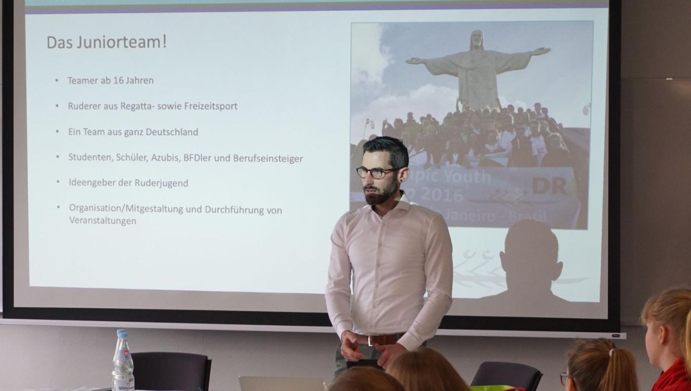 Erstmals war David Aras als DRJ-Vorstandsmitglied Aus- und Weiterbildung dabei und gab einen Überblick zu den Themen und Beteiligungsmöglichkeiten in der Ruderjugend. Auch der Generalsekretär Jens Hundertmark begrüßte die jungen Engagierten und präsentierte den Trailer SXULLS – Deutschlands beste Ruderer und der olympische Traum.