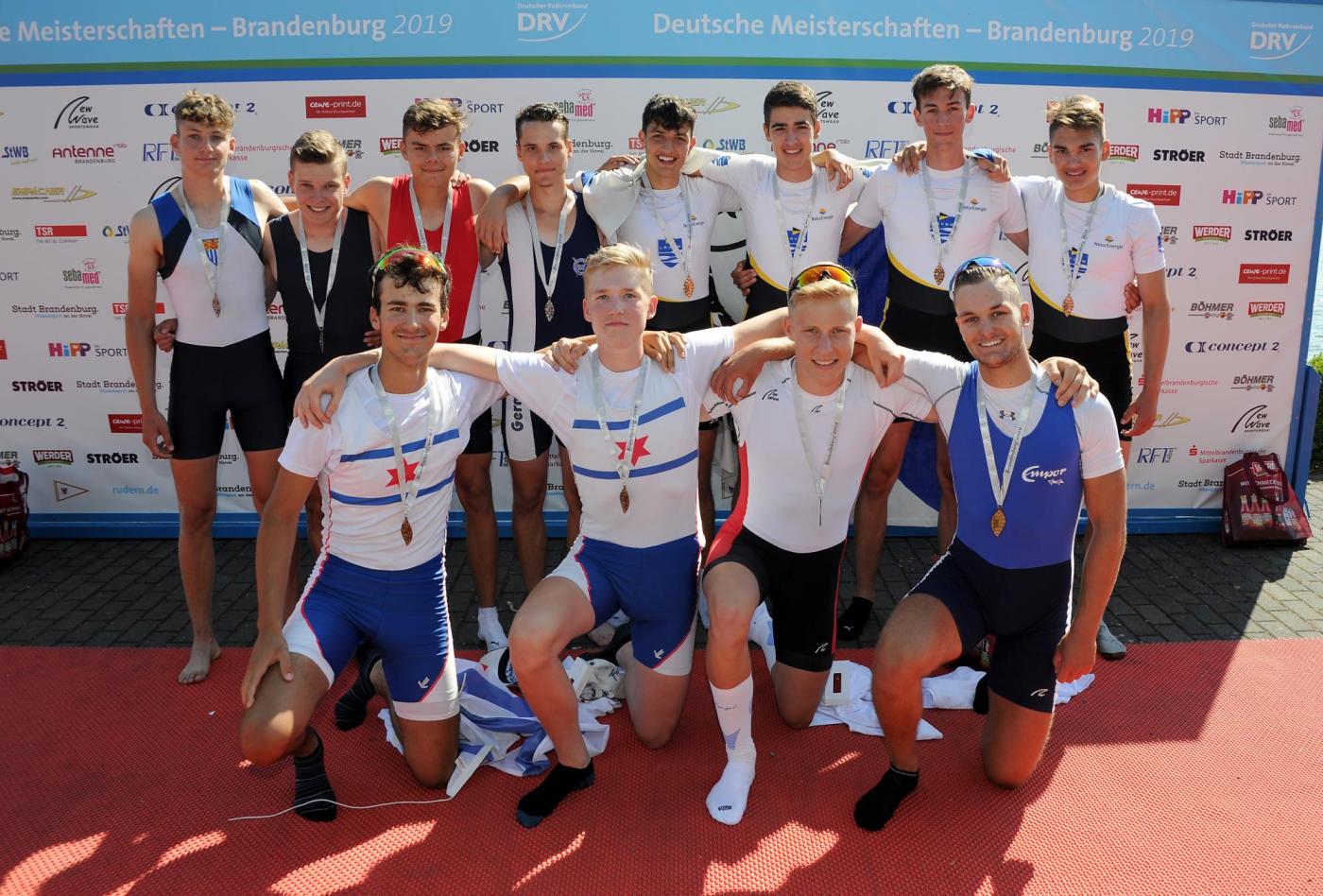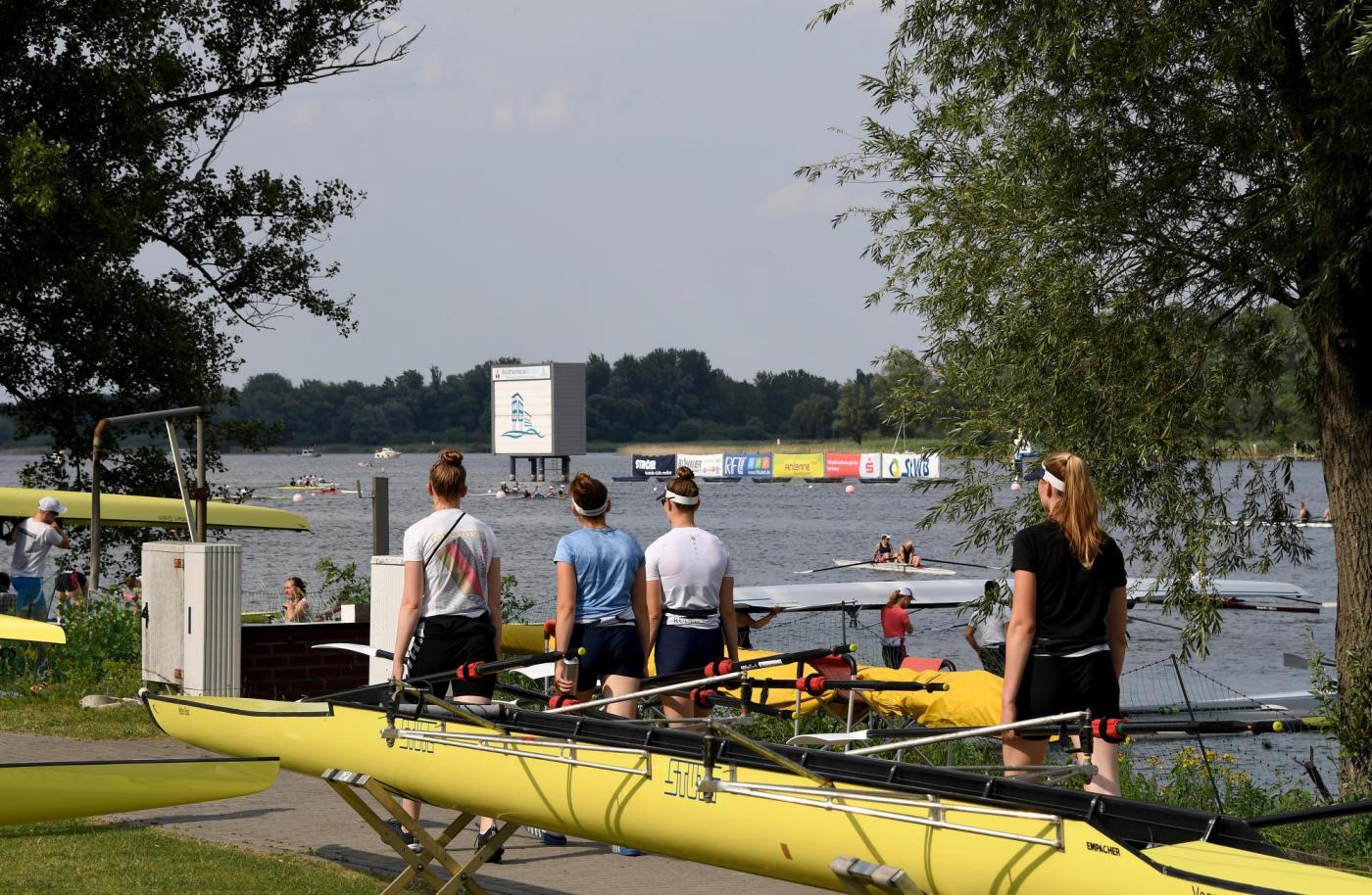 Seit Donnerstag herrscht Hochbetrieb auf dem Beetzsee in Brandenburg. Ein prachtvolles Bild bietet sich: Die Regattastrecke feiert ihr 50-jähriges Jubiläum, im Rahmen des 54. Wanderrudertreffens passiert ein Pulk aus knapp 50 Großbooten den Zielbereich vor Tribüne und außerdem: Die Deutschen Junioren- und Jahrgangsmeisterschaften locken gut 1200 Sportlerinnen und Sportler zum nationalen Kräftemessen. Vom Einer bis zum Achter geht es bei den B- und A-Junioren morgen um die Podestplätze – bei der U23 standen traditionell heute schon die Finalrennen an.