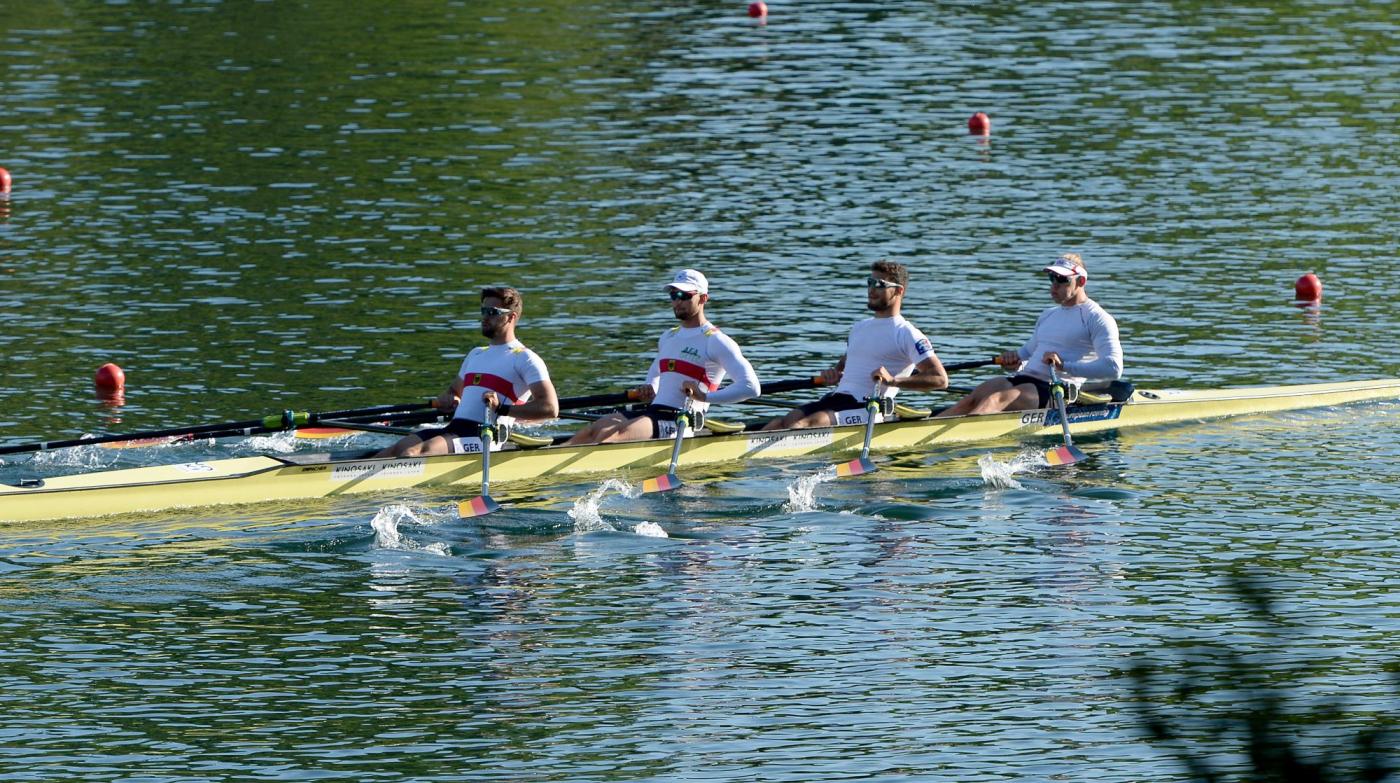 Nach einem schnellen Start setzte sich der leichte Doppelvierer mit Julian Schneider, Mahni Fatahi, Joachim Agne und Lucas Schäfer (Frankfurter RG Germania/ Ulmer RC 'Donau' e.V./Akademischer RC Würzburg e.V./ Reit- und Sportverein Steinmühle e.V.) auf den ersten 500 m an die Spitze des Feldes, musste dann aber die Boote aus der Türkei und den Niederlanden passieren lassen. Den dritten Platz verteidigten sie aber souverän bis ins Ziel und stehen damit morgen im Finale.