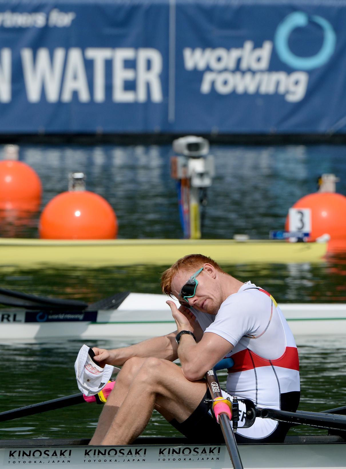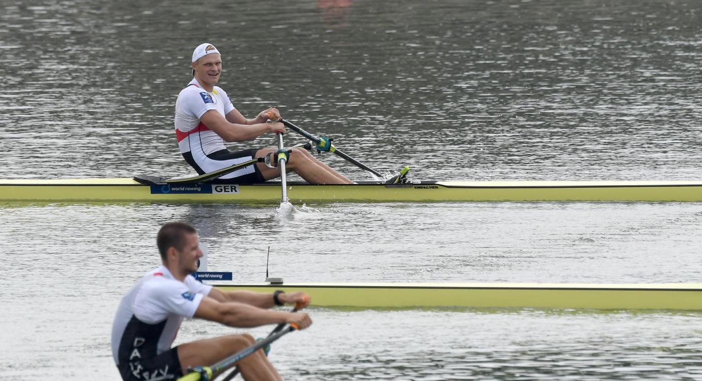 Für Rookie Leopold Reimann (Rüdersdorfer RV) ging es in seinem ersten WM-Rennen auch darum, weitere Erfahrung zu sammeln. Vier Boote waren in seinem Vorlauf am Start. Der 22-Jährige musste die Konkurrenz aber schon frühzeitig ziehen lassen, versuchte aber, den Abstand auf Rang drei gering zu halten. Im Ziel betrug dieser knapp drei Sekunden. „Wir wussten schon vor der WM, dass Leopold nicht um die Medaillen mitrudern wird. Dafür fehlt es ihm noch an physischen Voraussetzungen“, erklärt Weber.