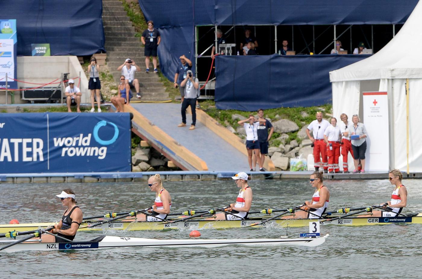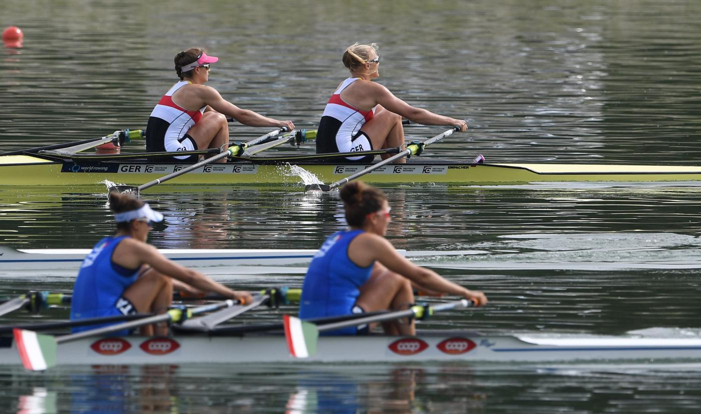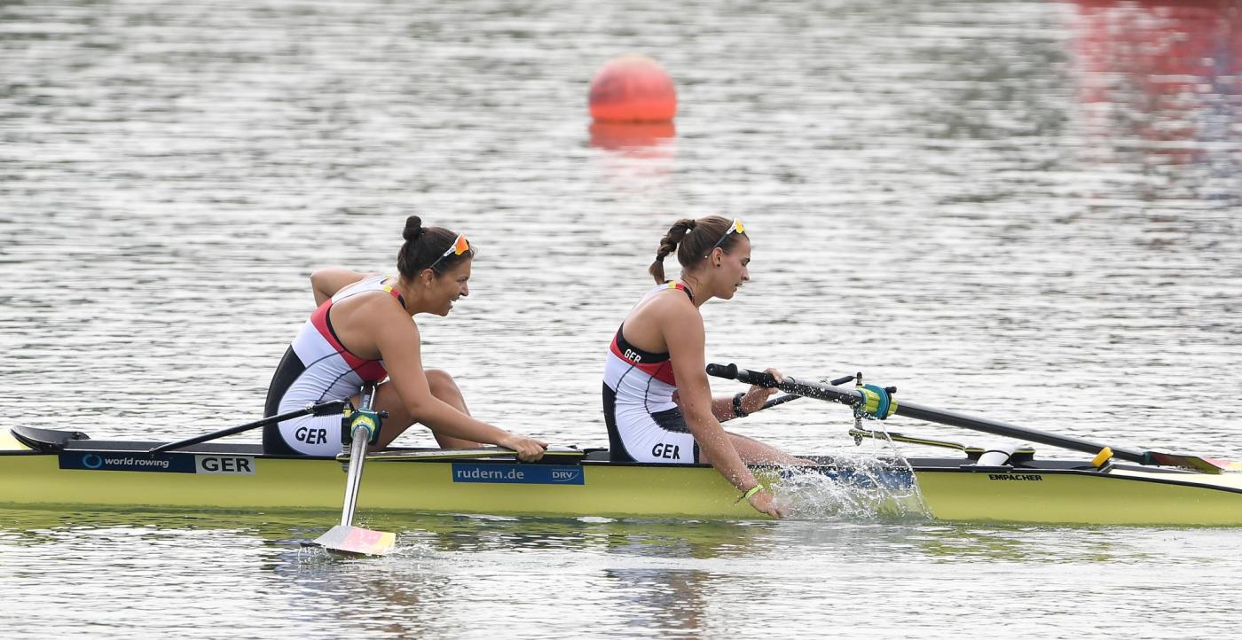 Auf Leonie Menzel und Pia Greiten (RC Germania Düsseldorf/Osnabrücker RV) wartete im Vorlauf heute keine leichte Aufgabe, qualifizierte sich doch nur das siegreiche Boot direkt für das Halbfinale. Das Duo ordnete sich nach dem Start auf Rang drei ein. An der Spitze machten die Boote aus Rumänien und den Niederlanden das Tempo. Im weiteren Rennverlauf fielen die Deutschen zunächst auf Rang fünf zurück, konnten aber auf den letzten 500 m das Tempo noch einmal erhöhen und an den Polen vorbei auf Platz vier rudern. Damit müssen die beiden den Umweg Hoffnungslauf nehmen. „Der Rennverlauf war wie zu erwarten. Start und Endspurt waren schon ganz gut, aber im Mittelteil müssen wir uns noch verbessern“, so Trainer Thomas Affeldt nach dem Rennen. „Es hätte besser laufen können. Die Bedingungen waren auf jeden Fall fair“, erklärt Menzel.