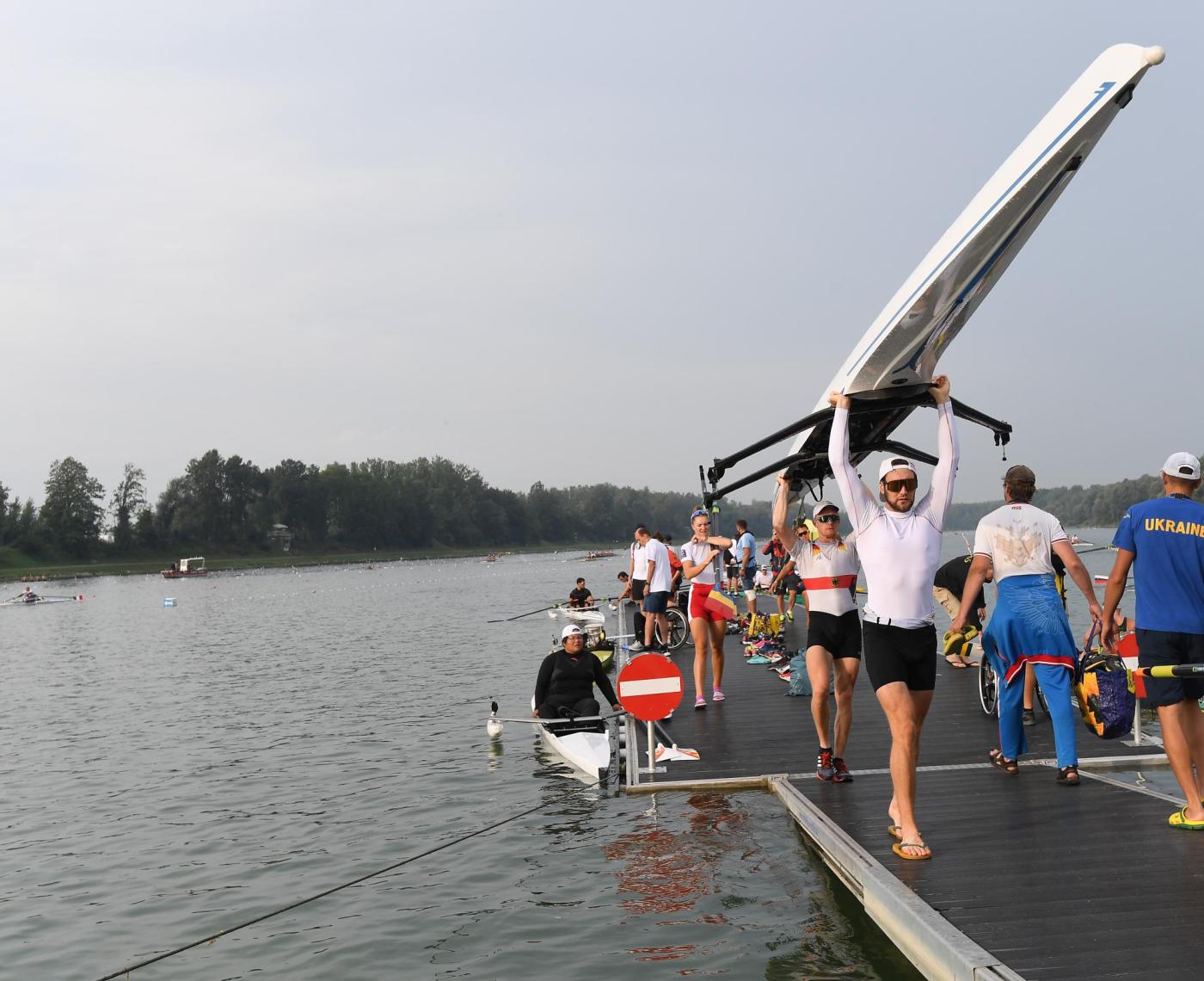 Für Marc Lembeck und Dominik Siemenroth im PR3 M2- lautete das kleine Ziel vor dem Rennen, nicht Letzter zu werden. Und das ist den beiden auch gelungen. Das Duo ordnete sich nach dem Start hinter den Kanadiern und Ukrainern ein und versuchte, die hinter ihn liegenden Amerikaner in Schach zu halten – mit Erfolg. Mit etwas mehr als drei Sekunden Rückstand überquerten sie als Dritte die Ziellinie. „Die Jungs sind heute im Rahmen ihrer Möglichkeiten gerudert. Sie können es noch etwas besser, aber das kleine Ziel, nicht Letzter zu werden, haben sie erreicht. Jetzt hoffen wir, dass wir im Hoffnungslauf auch vor den Amerikanern bleiben und am Ende vielleicht zwei Teams hinter uns lassen“, so Weber.