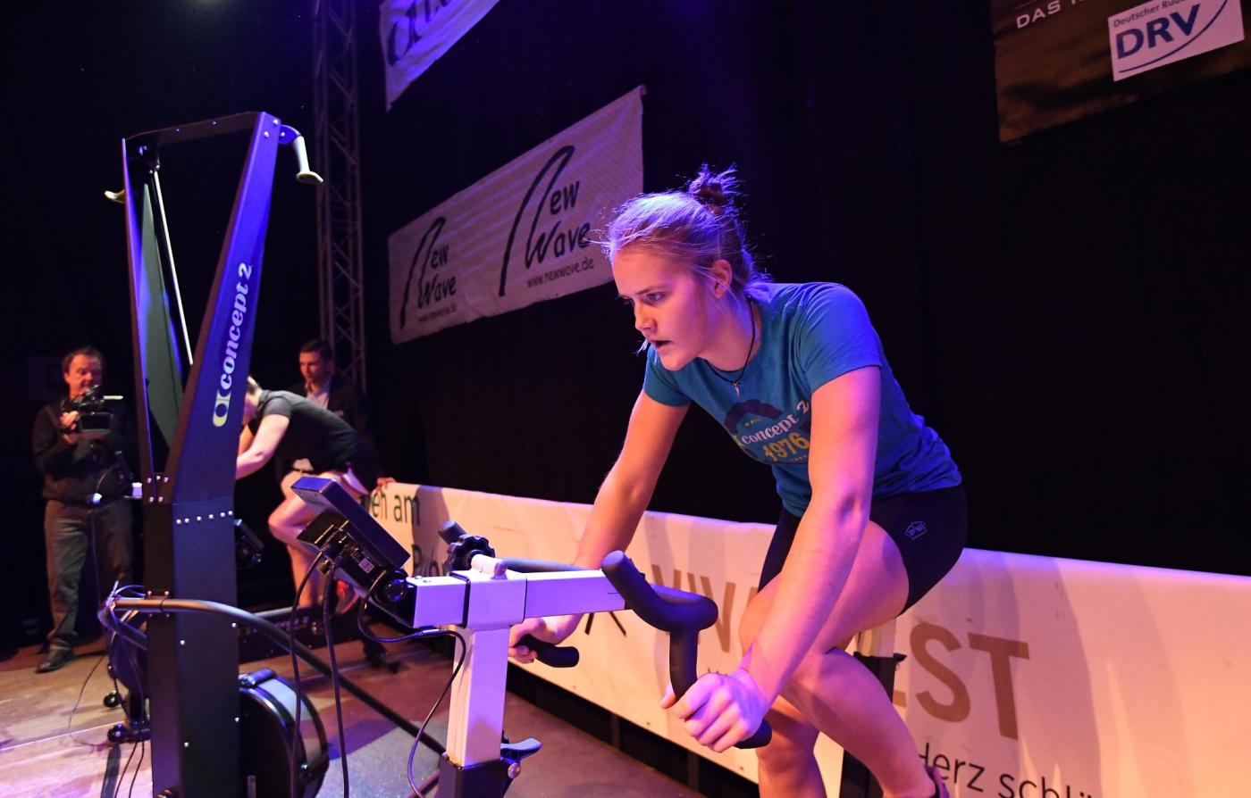 In der Mittagspause fand der "Concept2 ERGathlon" (250 m SkiErg, 500 m BikErg, 500 m Indoor-Rower) mit drei (ehemaligen) Nationalmannschaftsathleten statt. Leonie Neuhaus (Essen-Werdener RC, U23-WM-Bronze im Leichtgewichts-Doppelvierer) ging mit einem Vorsprung von 10 Sekunden vor Laura Kampmann (Turnverein 1877 e.V. Essen-Kupferdreh, Siebte bei der U23-WM 2017 im BW2x) ins Rennen, Björn Birkner (Ruderclub Rheinfelden, WM-Achter in Männer-Vierer ohne 2014), nahm mit einem Rückstand von 53 Sekunden die Verfolgung auf. In einem spannenden Fight konnte Birkner Meter für Meter aufholen. Angefeuert von den zahlreichen Zuschauern zog er auf dem letzten der drei Geräte, dem Concept2 Indoor Rower, an seiner ersten Gegnerin Laura Kampmann vorbei und auch auf Leonie Neuhaus konnte der 27-Jährige den Abstand immer weiter verkürzen. Am Ende konnte Neuhaus ihren Sieg mit sieben Zehntel über die Ziellinie retten. „Der Concept2 ERGathlon ist ein absolut spannendes Format, das haben wir heute gesehen. Vielen Dank an die Athleten, dass sie mitgemacht haben“, so Organisator Boris Orlowski.