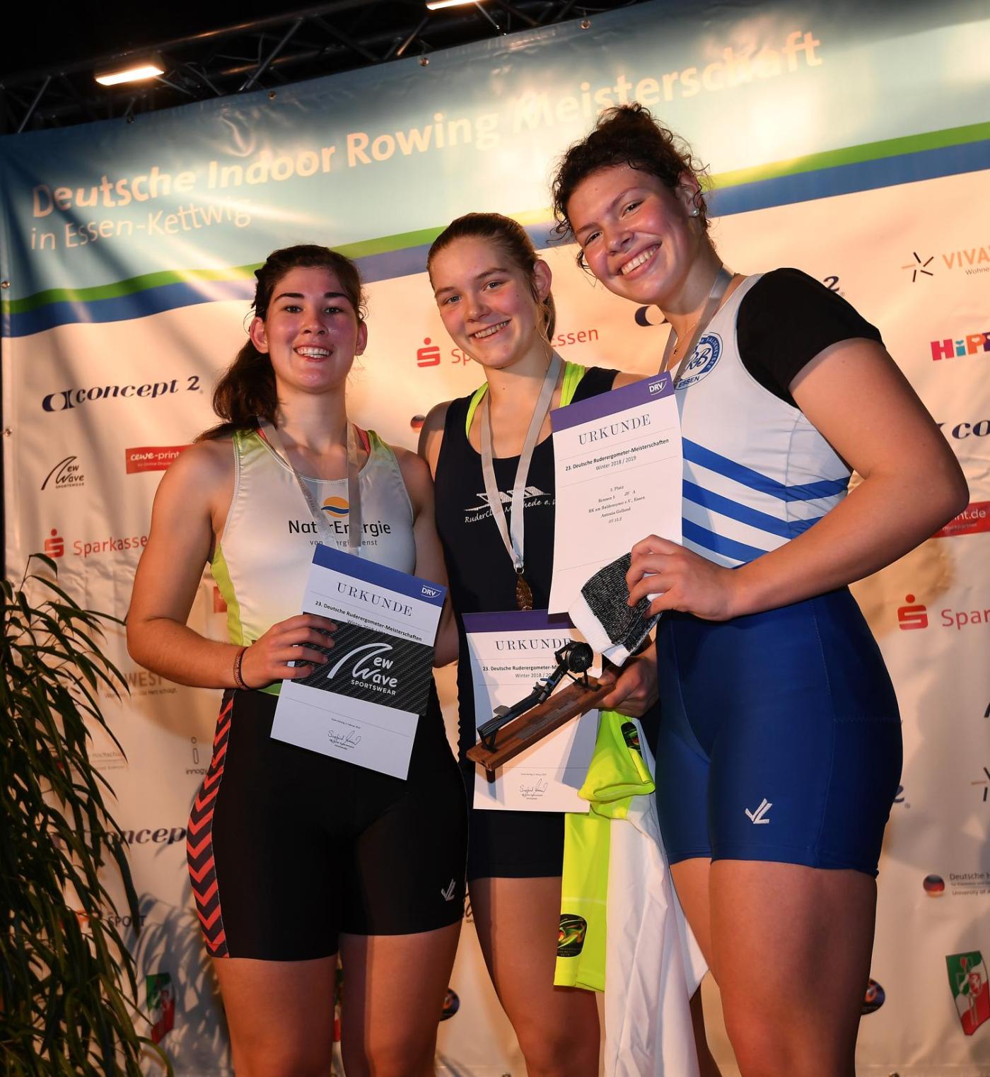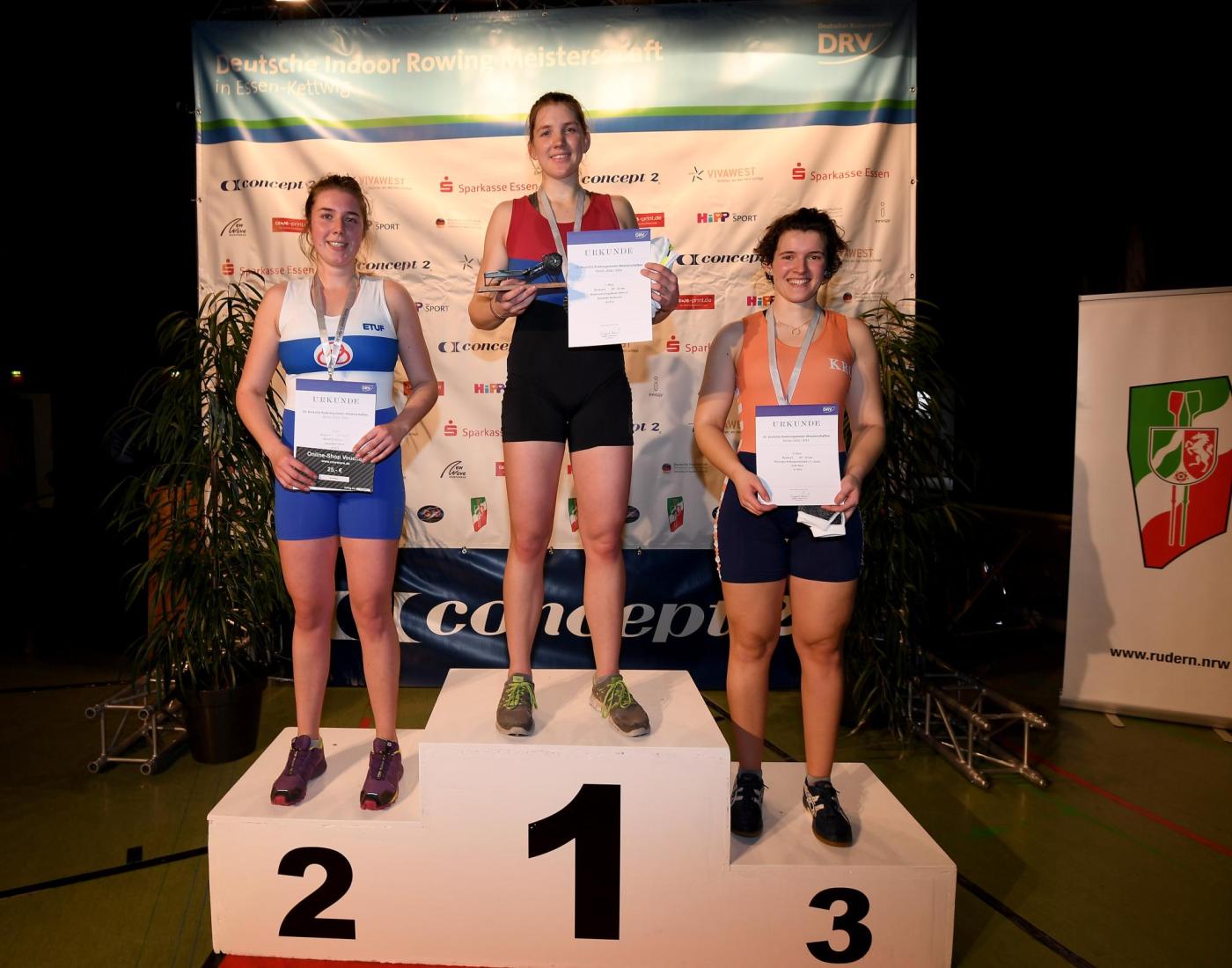 Nach Gold über 1.500 m im vergangenen Jahr war Alexandra Föster auch über die 2.000 die Schnellste. Die Ruderin vom Ruderclub Meschede setzte sich vom Start weg an die Spitze. Nach der Streckenhälfte lag sie schon 15 m vor ihren engsten Verfolgerinnen Luisa Gathmann (RC Rheinfelden Baden e.V.) und Antonia Galland (RK am Baldeneysee). Auf den zweiten 1.000 m konnte die 17-Jährige ihren Vorsprung weiter ausbauen und am Ende in 6:58 Minuten die Sieben-Minute-Marke knacken. Silber ging an Luisa Gathmann in 7:05 Min, über Bronze freute sich Antonia Galland (7:15,2 Min).