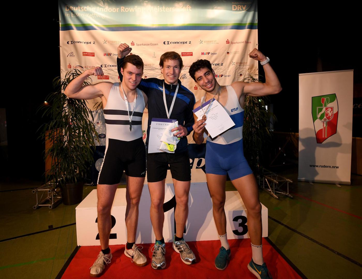Benjamin Reuter (SG Athletico Büdelsdorf) setzte bei den Männern ein deutliches Ausrufezeichen. Nach 1.000 m hatte er schon 15 m auf die Konkurrenz rausgerudert. Im weiteren Rennverlauf konnt er diesen Vorsprung auf 13 Sekunden ausbauen. Am Ende verpasste er mit 6:01,5 Min die 6-Minuten-Marke nur knapp. Dahinter lieferten sich Mohamed Taieb (RR ETUF Essen) und Lars Hildebrandt (Bessel-Ruder-Club e.V.) einen spannenden Kampf um Silber und Bronze. Knapp 400 m vor dem Ziel konnte der Mindener seinen Konkurrenten noch abfangen und sich in 6:14,6 Min den zweiten Platz sichern.