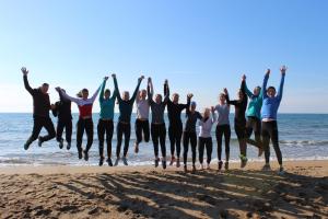 13 Sportlerinnen und zwei Trainerinnen machten sich am 27.12.2018 auf den Weg nach Italien zum Lago di Paola in Sabaudia. Ein Projekt, das für den ältesten U19- und den jüngsten U23-Jahrgang vom Bundesinstitut für Sportwissenschaft (BiSP) geschaffen wurde, um Frauen gezielt zu fördern. Im Vordergrund stand dabei das Training im Vierer und Achter. Alle Sportlerinnen haben sich sowohl im Riemen- als auch im Skullbereich probiert und fleißig trainiert. Die hervorragenden Bedingungen sorgten für ausreichend Kilometer auf dem Wasser, aber auch an Land wurden Strandläufe, Beachfußball, Krafttraining und Gymnastik durchgeführt. Eine „coole“ und mit vielen Lachern begleitete Abwechslung war das Kick-Box-Training mit Matteo und Stefano. „Wir hatten ideale Bedingung, die gibt es nicht immer in Sabaudia. Es hat Spaß gemacht, konzentriert für einen kurzen Zeitraum zusammen zu trainieren“, so U19-Bundestrainerin Sabine Tschäge, die zusammen mit Claudia Herpertz, Landesstützpunkttrainerin aus Dresden, das Training geleitet hat.