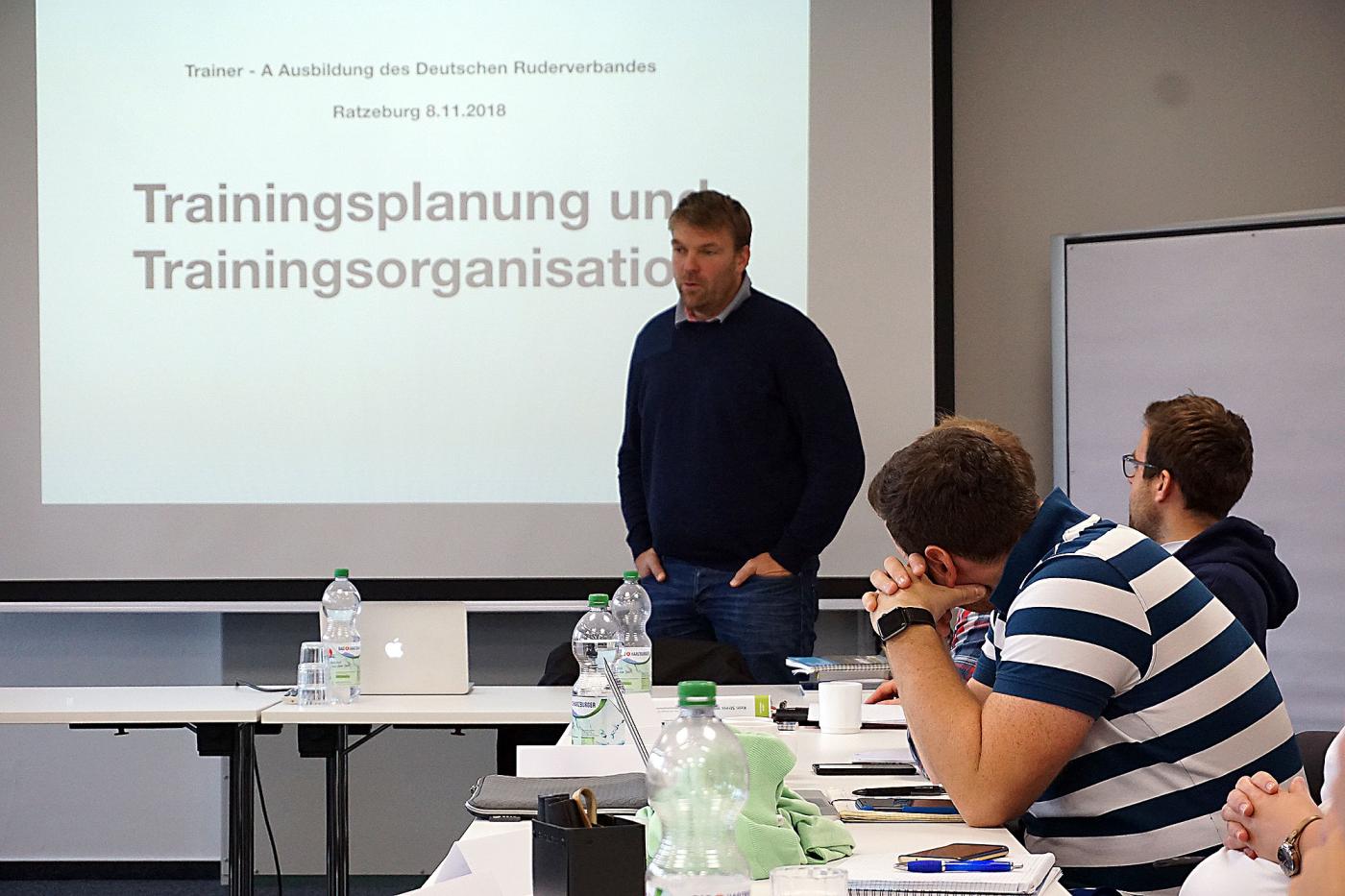 Wir sind die Ersten, die diesen Lehrgang über das Online-Portal edubreak®Sportcampus absolvierten. Fünf aus unserer Gruppe, wir beide eingeschlossen, haben bereits die B-Lizenz mit Hilfe der Plattform absolviert, auf der Aufgaben und Lehrgangspläne, Videos und Berichte, Unterlagen und Notizen hochgeladen und anschließend kommentiert und bearbeitet werden können. Dazu kamen zwei Präsenzphasen in Ratzeburg im Abstand eines Jahres. Was gut angedacht war, nämlich die Aufgaben möglichst über das Jahr verteilt, immer in Interaktion mit den Kollegen zu bearbeiten, hat nicht ansatzweise so funktioniert wie beim vorangegangenen Lehrgang B. Hier werden sich Andreas König und Reinhart Grahn sicher etwas einfallen lassen für die folgenden Lehrgänge. Aber wir Trainer müssen uns auch an die eigene Nase fassen, denn vor zwei Jahren haben wir das Portal noch weit über die Aufgabenstellungen hinaus zum Informationsaustausch genutzt.