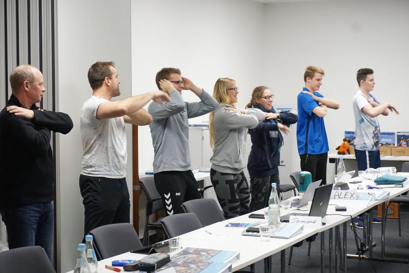 Am Sonntag begann der Tag mit dem Thema Kommunikation. Dabei wurden verschiedene Szenarien entwickelt, die in der Kopfstandmethode erarbeitet wurden und auf das eigentliche Trainerdasein zurückgeführt wurden. Der Nachmittag wurde der Prävention sexualisierter Gewalt gegenüber Kindern und Jugendlichen gewidmet und mit der Unterzeichnung eines entsprechenden Ehrenkodexes abgeschlossen.