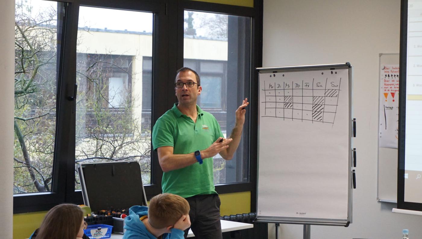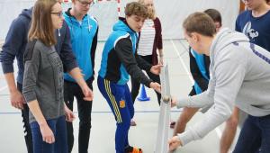 Die Teilnehmer lernten viele verschiedene Facetten des Trainerdaseins kennen: so wurde neben grundlegenden Kenntnissen über Ernährung und Sportmedizin auch die Planung von Training vermittelt und sogar anhand von eigenen Vorschlägen überdacht und weiterentwickelt. Da dann aber doch das Zuhören auf Dauer für einige zu anstrengend wird, wurde im Seminarraum regelmäßig mit „Morgenzeitungen“, einer humorvollen Zusammenfassung des Vortages, oder einem „Kick“ , einem wilden Bewegungsspiel, die Stimmung durch die jeweiligen Gruppen angehoben.