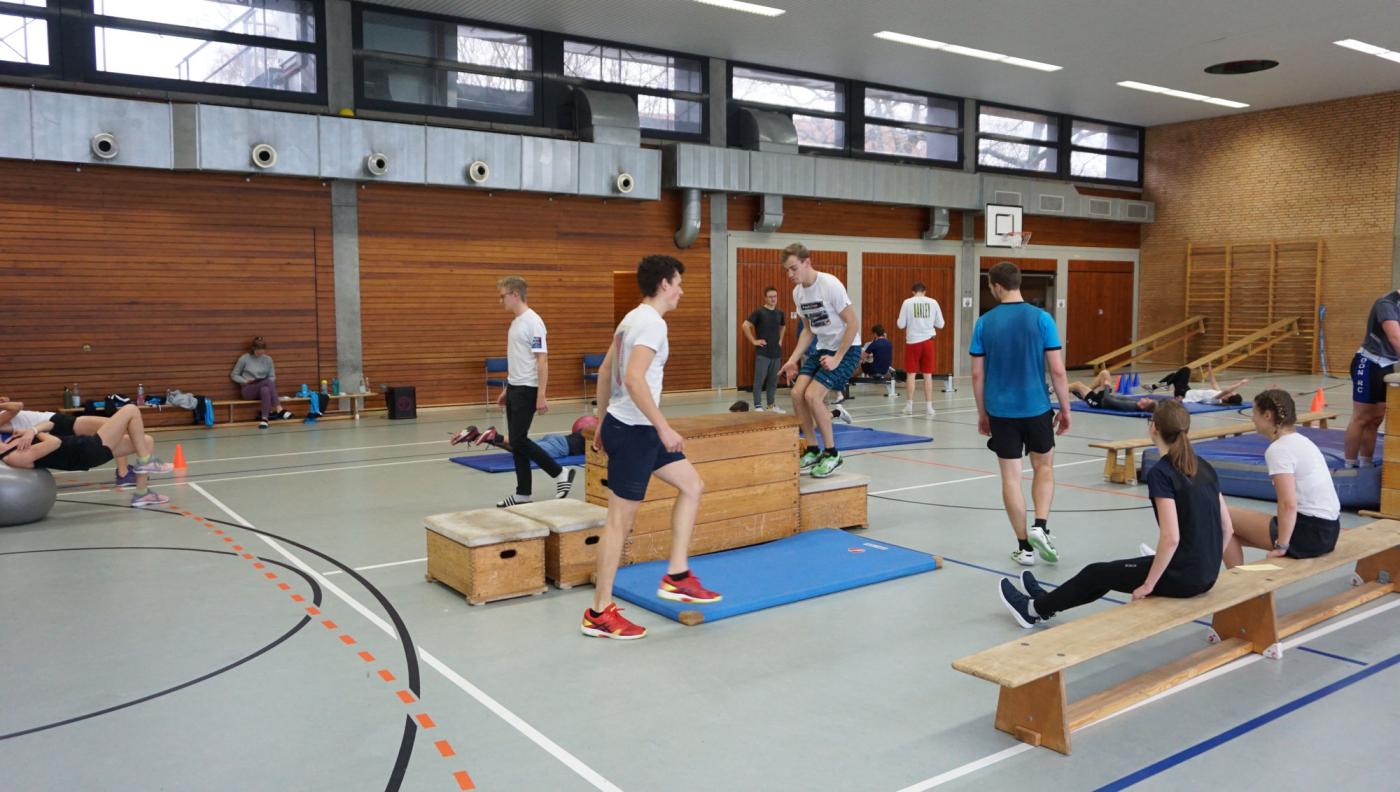 Außer im Seminarraum verbrachten die Teilnehmer auch viel Zeit in der Sporthalle der Ruderakademie. Dort wurde nicht nur selbst geschwitzt wie beim Stabilisationstraining sondern auch jede Gruppe leitete eine Sportstunde zielgruppengerecht an.
