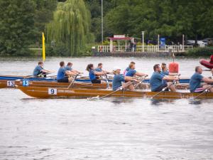 Das Highlight des Tages war das Patientenrennen, bei dem 4 Hamburger und 1 Lübecker Team an den Start gingen. Die Patienten freuten sich im Anschluss bei der Siegerehrung sichtlich über die Auszeichnung und die Leistung. Schließlich haben die meisten von ihnen im ganzjährigen Rudertraining, welches auf Initiative der Stiftung Leben mit Krebs bei der Ruder-Gesellschaft HANSA e.V. vor Ort angeboten wird, das ganze Jahr über trainiert. Den Sieg trug in diesem Jahr das Team „Happy“ davon, knapp gefolgt von den „Alsterschlawinern“, den „Alsterchaoten“ und den „Alsterperlen“. Das eigens aus Lübeck angereiste Team „Trave Nessie“ konnte den 5. Platz für sich entscheiden.