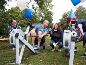 Lauritz Schoof, 2-facher Olympia-Goldgewinner im Rudern und gleichzeitig in ärztlicher Ausbildung am UKE, erklärte interessierten Zuschauern zudem in der Aktion „In 5 Min zum Ruder-Profi“ am Ruder-Ergometer die wichtigsten Grundlagen des Ruderns.