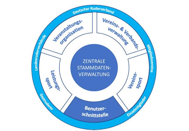 Im Mittelpunkt der Arbeit könnte demnach eine zentrale Stammdatenverwaltung für den ganzen Ruderverband stehen. Um diese Datenbasis können dann verschiedene Anwendungen und Funktionen der verschiedenen Anforderungsbereiche angegliedert werden. In den jeweiligen Aufgaben-Modulen kann darüber hinaus auf diese Datenbasis zugegriffen werden, so dass eine Mehrfacherfassung nicht mehr notwendig ist. „Mein Wunsch ist es, einen digitalen DRV zu entwickeln, an dem alle teilhaben und mitmachen - vom Landesruderverband bis zum Ruderverein“, wünscht sich Siegfried Kaidel.