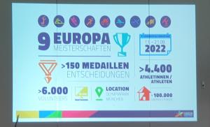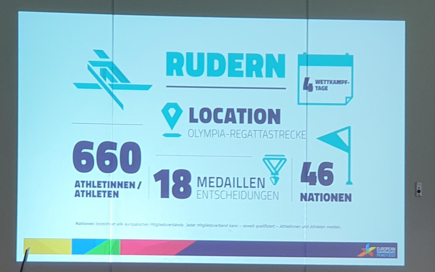 Neben den Ruderwettkämpfen wird in München auch im Beachvolleyball, Kanu-Rennsport, Klettern, Leichtathletik, Radsport, Rudern, Tischtennis, Turnen und Triathlon um die EM-Medaillen gekämpft. Das Organisationskomitee möchte ein Event schaffen, an das sich alle noch Jahre später zurückerinnern. Damit das gelingt, wurde sich auf sieben Werte – darunter Nachhaltigkeit, Innovation, Leidenschaft und Diversität – verständigt, auf denen die Veranstaltung aufbauen soll.