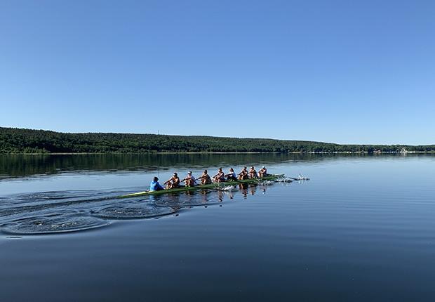 Potsdam, Stützpunkt der Disziplingruppe Frauen-Riemen, war eine der ersten Städte, die im Bereich Leistungssport das Rudern im Mittel- und Großboot erlaubt haben. Seit Anfang Mai kann das Team um Disziplintrainer Tom Morris nach fast zwei Monaten Zwangspause wieder auf dem Wasser trainieren. „Wir haben sehr gute Unterstützung vom OSP Potsdam und dem Ruderzentrum hier bekommen. Dadurch konnten wir wirklich früh wieder aufs Wasser“, freut sich Morris.