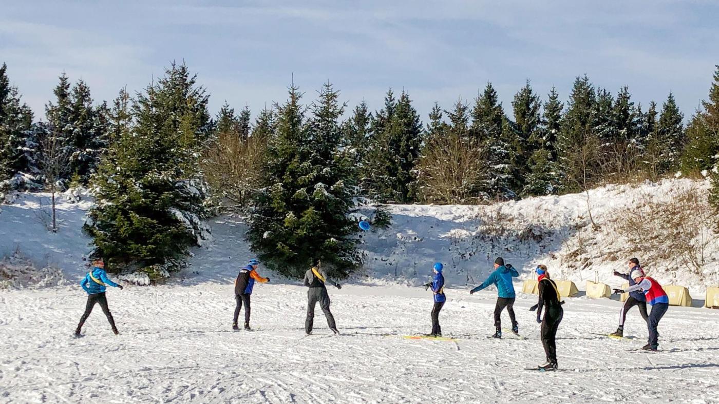 Samstagmorgen ging es dann für alle endlich auf die Skier. Egal ob Anfänger oder Fortgeschrittener alle standen auf den Skiern und durften viele verschiedene Skigewöhnungsspiele machen. Schon diese Spiele brachten selbst die „alten Hasen“ ins Schwitzen. Angefangen bei einfachen Trittübungen arbeiteten wir uns als Gruppe immer weiter vor, um am Ende eine nervenzerreißende Partie Ultimate Frisbee zu spielen. Und dann? Wie könnte es bei Ruderern anders sein? Essen! Vielen Dank an dieser Stelle schonmal an das Sporthotel Oberhof, dessen Team uns hervorragend beherbergte.