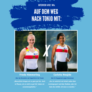 In der zweiten Ausgabe des Formats haben wir uns mit Frieda Hämmerling (Rudergesellschaft Germania Kiel von 1882) und Carlotta Nwajide (Deutscher Ruder-Club von 1884 Hannover) unterhalten. Die beiden gehören zum in Berlin angesiedelten Doppelvierer, dem derzeit stärksten DRV-Trumpf bei den Frauen. Beim Weltcup-Rennen auf dem Luzerner Rotsee wurden beide zuletzt nur von China bezwungen. Frieda und Carlotta sprechen darüber, was sie in Tokio erreichen wollen, die Belastung durch ständigen Druck und ihr leicht unterschiedliches Verständnis von Pünktlichkeit.