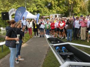 Abschließend wurde der brandneue Achter des Landesruderverbands getauft, diese ehrenvolle Aufgabe übernahmen Claudia Reinelt und Viola Pfersich. Das Boot "Maximilian Reinelt" wird künftig am Landesleistungsstützpunkt in Breisach eingesetzt werden.