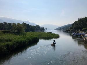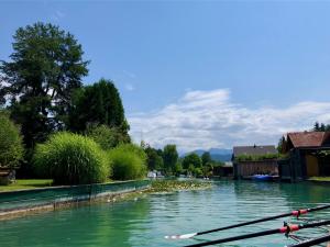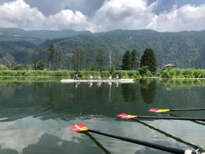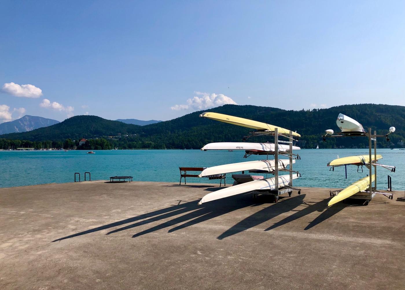 Den 3. und 4. Rudertag verbrachten die Damen auf dem Wörthersee. Er ist mit fast 20 km² der größte See in Kärnten und sicher auch einer der bekanntesten und wärmsten Alpenseen. In Klagenfurt, der Hauptstadt Kärntens, erkundeten die Ruderinnen mit zwei C-Vierern des RV Nautilus den ca. 17 km langen See. Mit seinen Inseln, Halbinseln und ruhigen Buchten bietet er jegliche Form von Wassersport. Wegen nicht allzu guter Wetterprognosen überließen allerdings viele Menschen den Ruderinnen den See am 1. Rudertag fast alleine. Am 2. Tag gab es Sonne pur, die sogar Fallschirmfliegern beste Bedingungen bot. Romantische Ecken wie “Klein Venedig” an der Glanfurt oder die Bucht von Maria Wörth luden zum Verweilen ein. Am Ende der Rudertouren lockte ein erfrischendes Bad im Wörthersee.