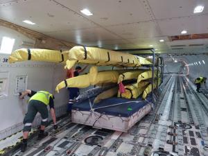 DRV-Wettkampfboote im Jumbojet unterwegs nach Tokio