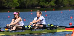 Lena Osterkamp (Deutscher Ruder-Club von 1884 e.V.) und Laura Kampmann (Turnverein 1877 e.V. Essen-Kupferdreh) haben nach ihrem Rennen das Weltcupdebüt hinter sich. Auf den ersten 500 Metern konnten die Debütantinnen auch zunächst gut mithalten, mussten sich gegen Ende jedoch hinter den beiden italienischen Booten auf dem vierten Platz einreihen. Für den morgigen Hoffnungslauf sprach Osterkamp bereits die klare Devise aus: „Wir möchten nicht letzter werden.“. Denn die ersten vier der fünf Boote können sich dann noch einmal den Finaleinzug sichern.