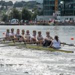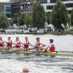 Mit dabei waren alte Hasen und Häsinnen aus Krefeld, Hamburg, Frankfurt und Berlin. Aber auch Newcomer wie die Frauenachter „Alstersprinter“ aus Hamburg und der „Lahn-Achter“ aus Limburg/Gießen. Bei den Frauen dominierten zunächst klar die „Havelqueens“, die jedes ihrer Vorlauf-Duelle gewannen. Die routinierten Ruderinnen aus Berlin ließen sich selbst von einem technischen Defekt der Startanlage mit Abbruch gleich im ersten Rennen nicht aus der Ruhe bringen: Die Havel-Ruderinnen durften nochmal alleine gegen die Uhr starten und legten sogar ohne Gegner die schnellste Zeit vor. Aufgeteilt in schnellere A- und langsamere B-Gruppen, ruderten dann die Frauen-Achter gegeneinander, um die Plätze 1 bis 6 auszufahren. Am Ende gab es aber dann doch eine Überraschung: die Ruderinnen vom Crefelder Ruder-Club steigerten sich von Lauf zu Lauf und siegten im Finale hauchdünn vor den Damen aus Berlin. Den Bronze-Platz bei der Frauen-Ruderbundesliga holten sich die österreichischen Ruderinnen vom „Banner Wiking Linz“ vor den Newcomerinnen vom „Alstersprinter“.
