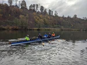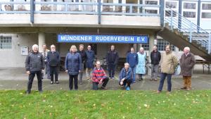 Freitagabend sind vierzehn Teilnehmer*innen in die Fachwerk- und Dreiflüssestadt angereist und haben bei einem gemeinsamen Abendessen im Ratsbrauhaus das Sitzungswochenende eröffnet. Am nächsten Morgen wurde die Gruppe einschließlich zweier Online-Teilnehmer von Thomas Kossert, dem Manager des Mündener Rudervereins, im Bootshaus begrüßt.